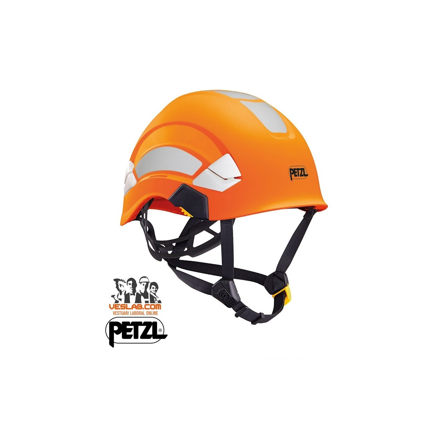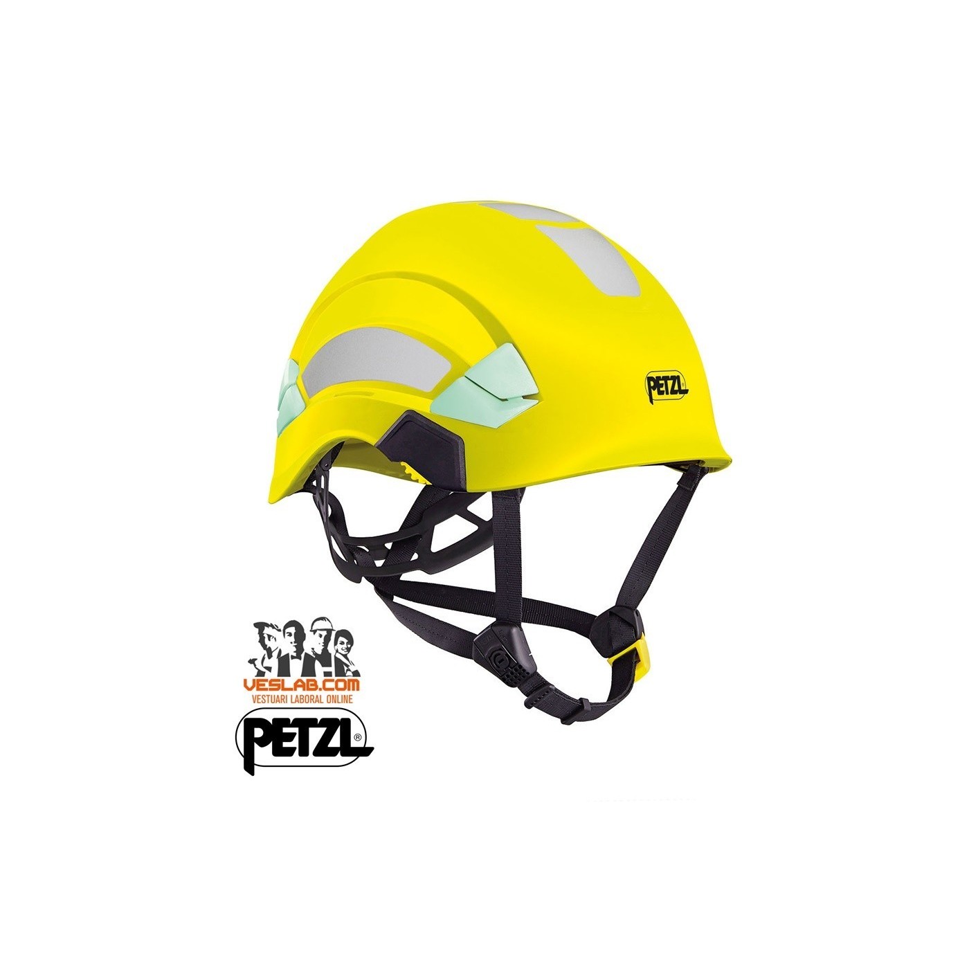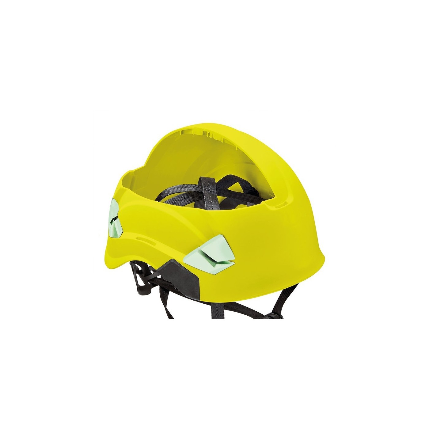 Comfortable Petzl Vertex helmet. The high visibility version features a fluorescent outer shell with phosphorescent clips and reflective bands, for optimal visibility of the worker, day or night.
