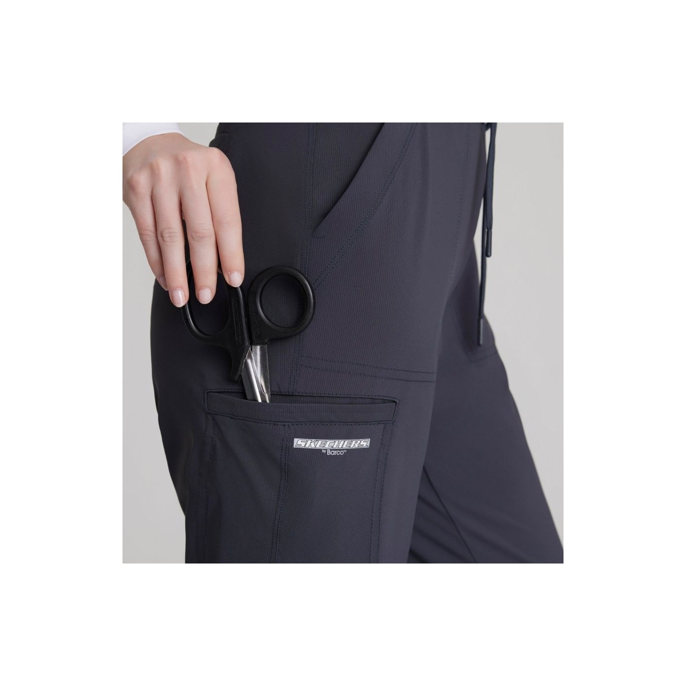 The Reach Women's Medical Pants by Skechers™ by Barco Slip-ins combine comfort and functionality with their 360° stretch Comfort Knit fabric, elasticated waistband with adjustable drawstring, and moisture-wicking properties. Their straight and slim fit, along with four functional pockets, make them ideal for everyday wear.