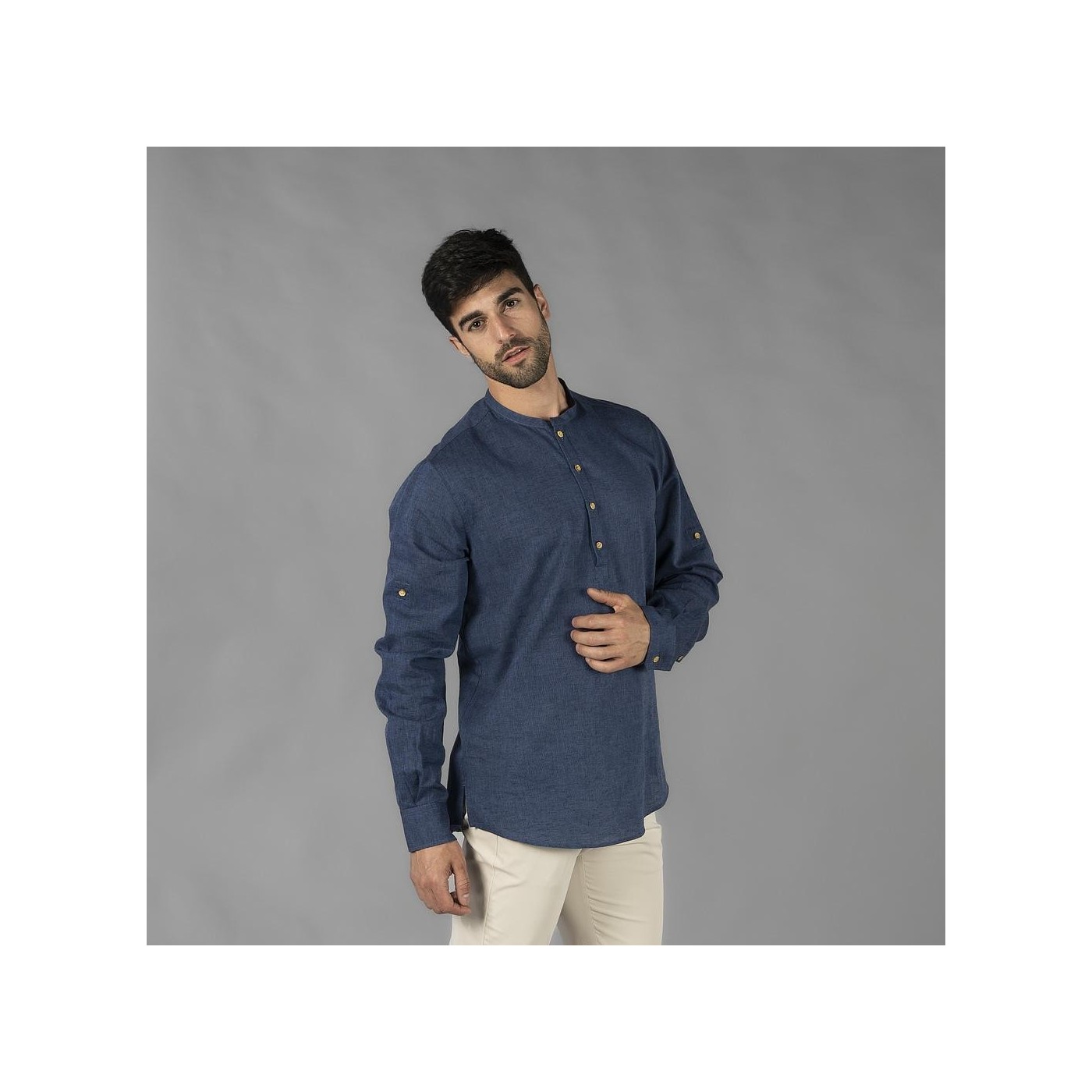 Elegant as well as casual mandarin collar shirt for men with long sleeves and roll-up with button fastening. Made in Plana 55% Linen and 45% Cotton. Ideal for waiters, hotel staff and any activity or business that wants to provide a distinctive corporate image.