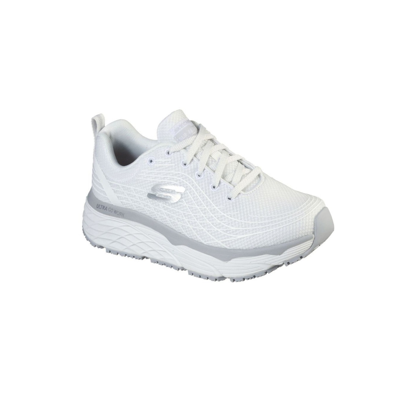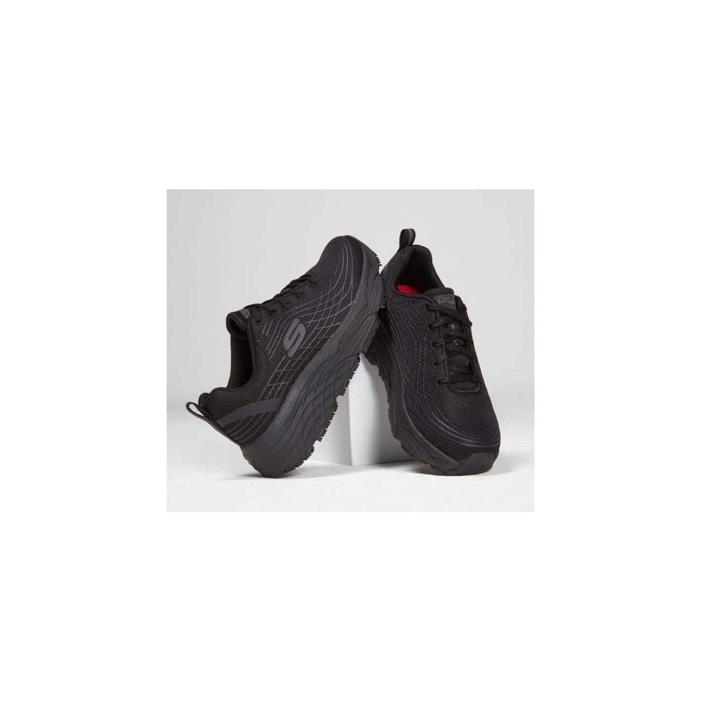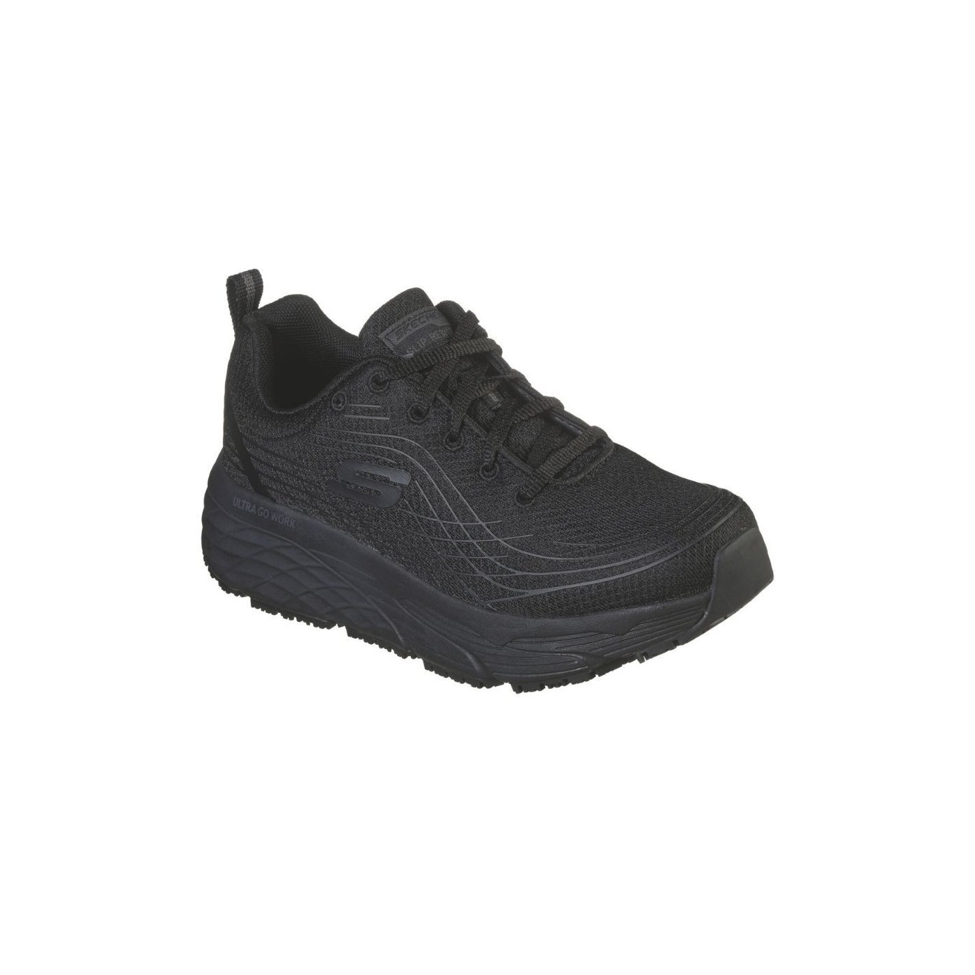 Experience maximum comfort and safety in the Work Relaxed Fit®: Skechers Max Cushioning Elite™ SR shoe. This slip-resistant occupational shoe features a durable mesh and synthetic upper design, cushioned Arch Fit® insole and flexible midsole.