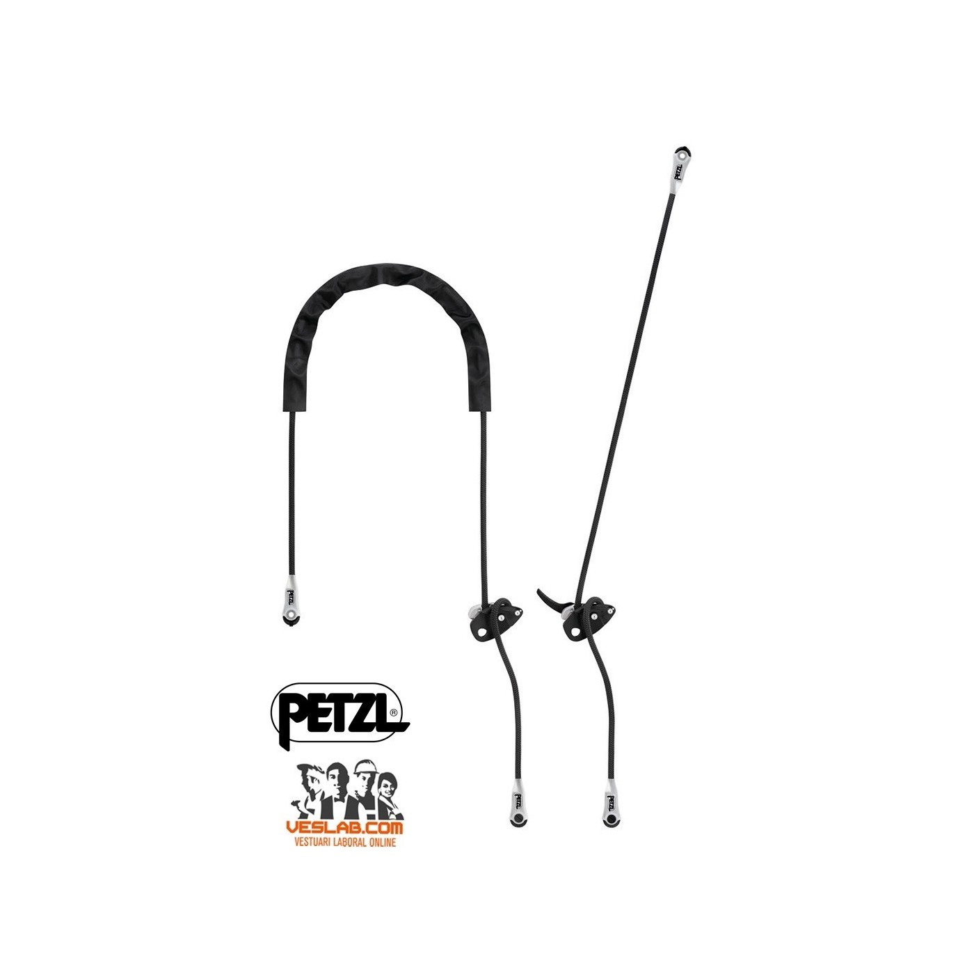 - double mode (on the harness side attachment points) when the user works with weight on his/her feet. This type of attachment ensures better load distribution on the belt. Length is adjusted by pressing on the pivoting cam