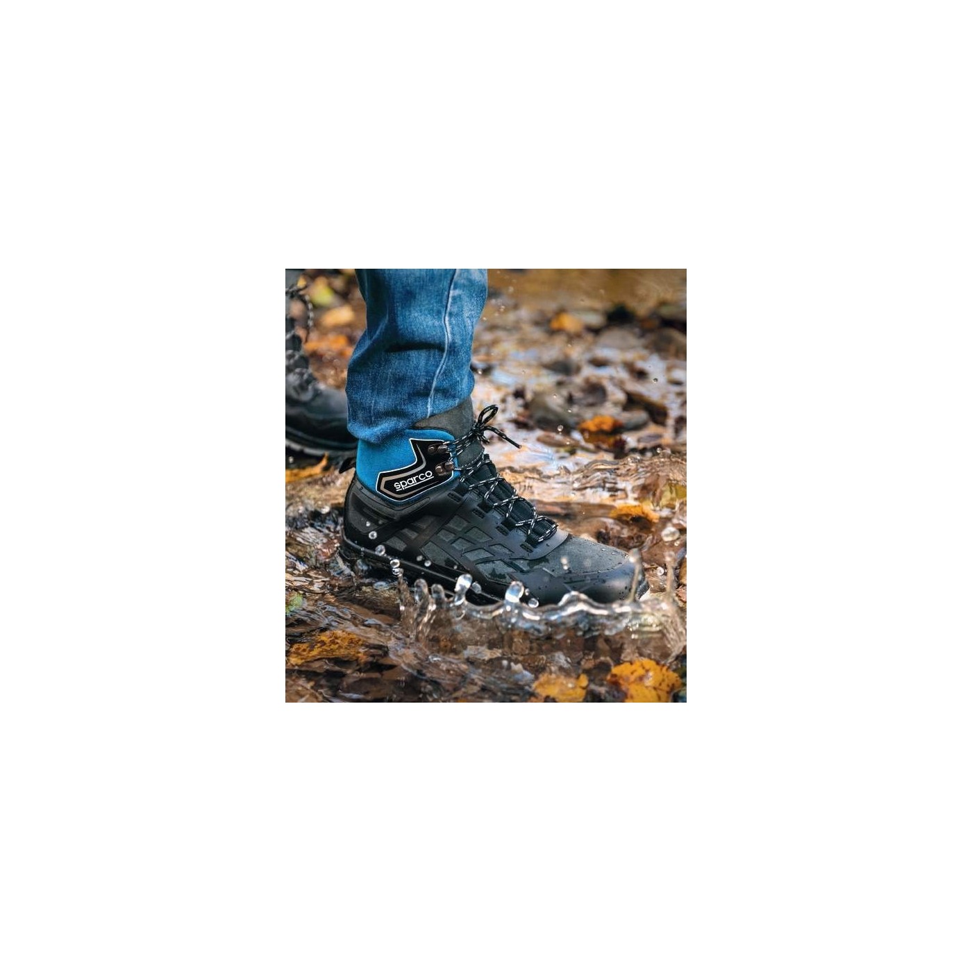 Sparco safety boot with a special water resistant DRS membrane ((DRY RESPIRATION SYSTEM). It has an outer membrane made with water-repellent technical microfiber and microinjected inserts. It is a resistant and breathable boot, with an ideal behavior in particularly humid and wet.
