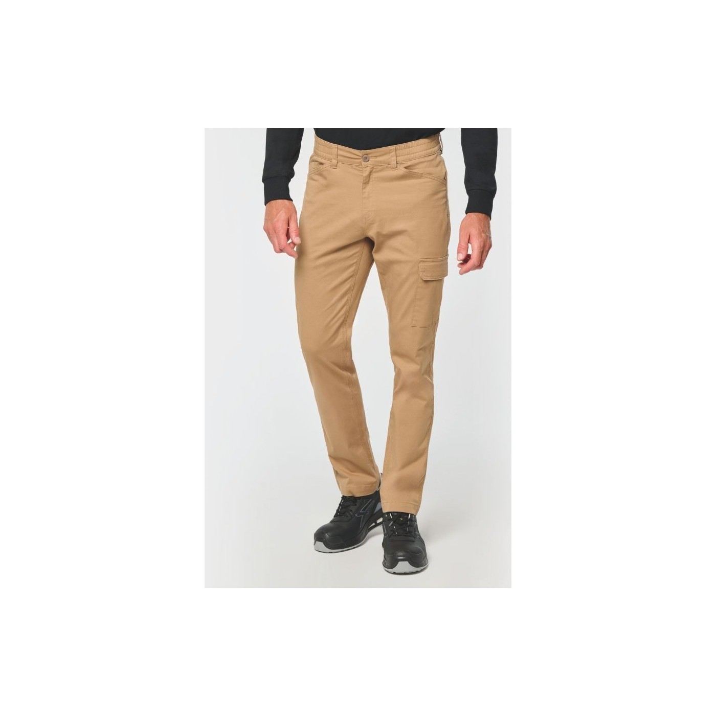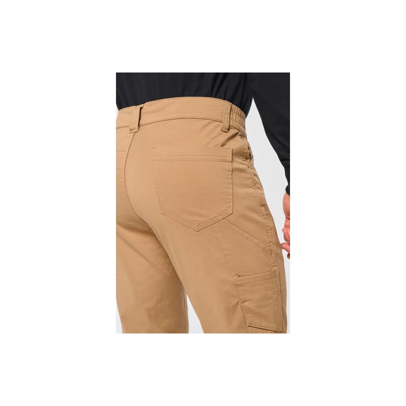 The WK unisex stretch cotton trousers offer comfort and durability with their 250 g/m² twill fabric and multiple pockets, including tool pockets. Their semi-elastic waistband and reinforced seams ensure a secure, long-lasting fit. Ideal for professionals in industries such as construction and carpentry.