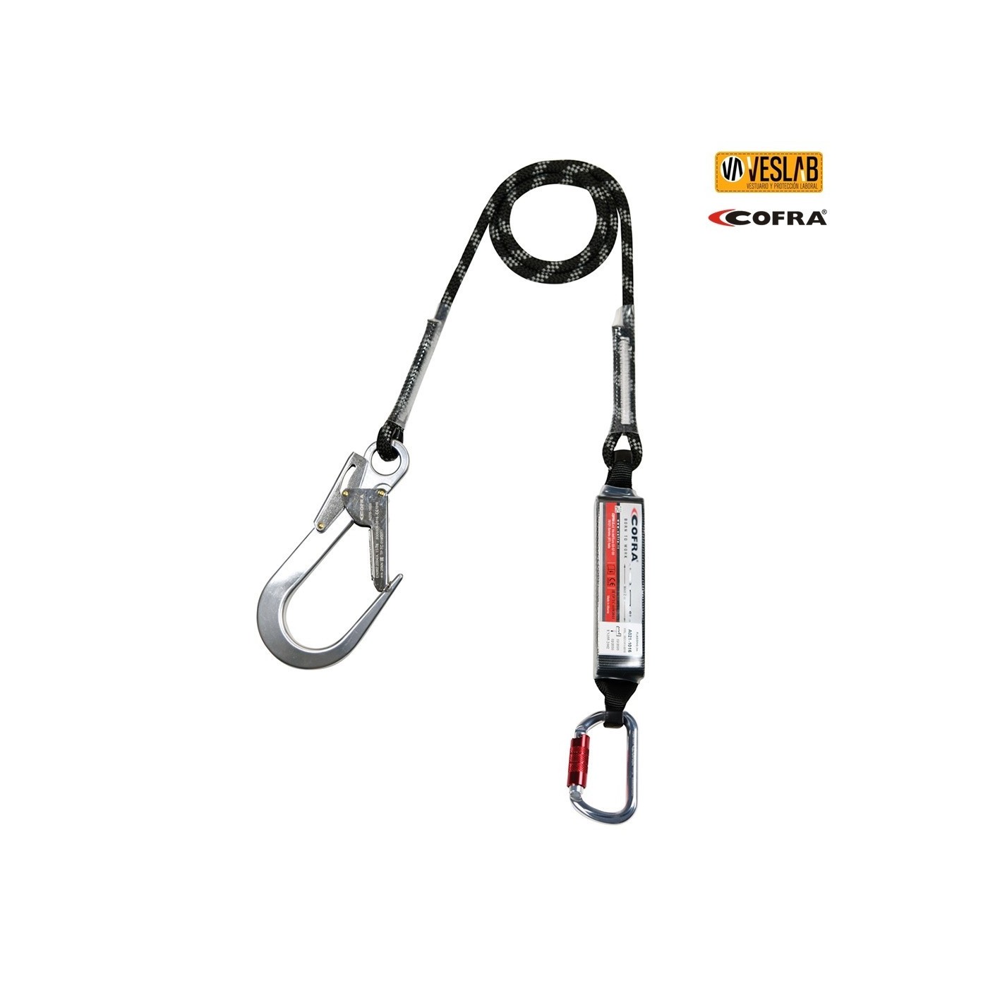 Simple lanyard with integrated energy absorber. Equipped with an aluminum base connector and an aluminum anchor connector. Static rope 11 mm diameter.
