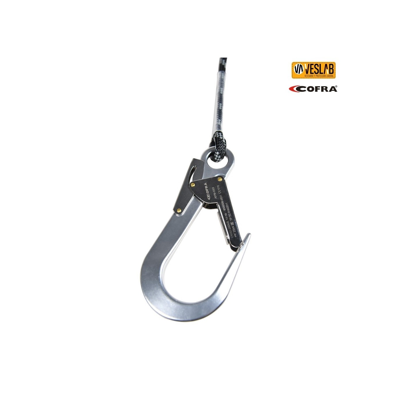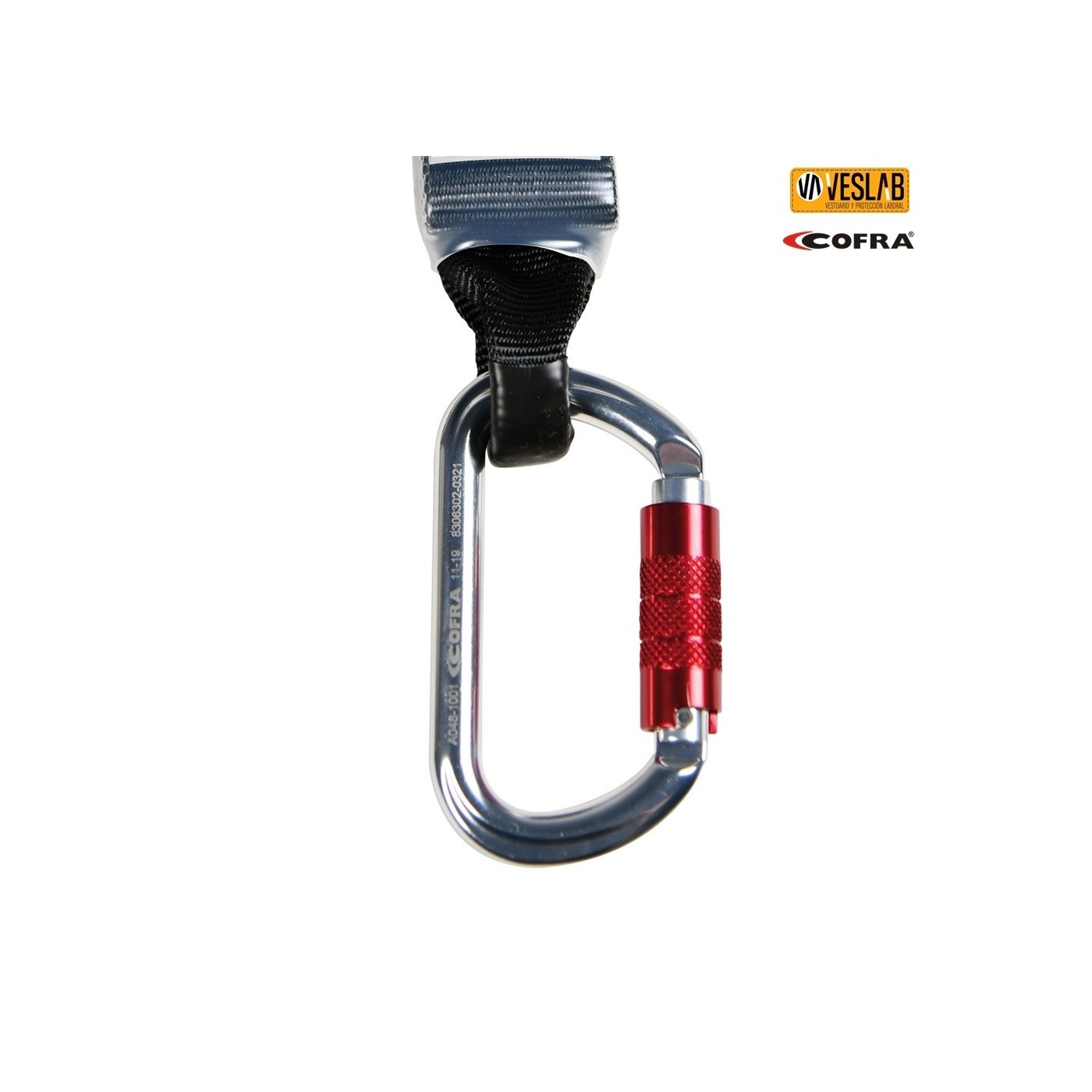 Discover the Flagging chest from the Dampermax Pro commercial line: a simple cord with integrated energy absorber. This product features an aluminum base connector and an aluminum anchor connector, ensuring your safety. In accordance with the EN 355:2002 standard, it has a length of 1.5 m and a weight of 940 g. The base connector features a 20mm opening, a two-stroke automatic ring nut block (TWIST), Key-Lock closure and complies with EN 362 with a minimum strength of 25kN. The anchor connector has a 64 mm opening, a safety rear lever block and complies with EN 362 with a minimum strength of 25 kN. The rope, of Kernmantle construction and 11 mm diameter, is made of polyamide and is static type. Secure your work with Cofra Flagging!