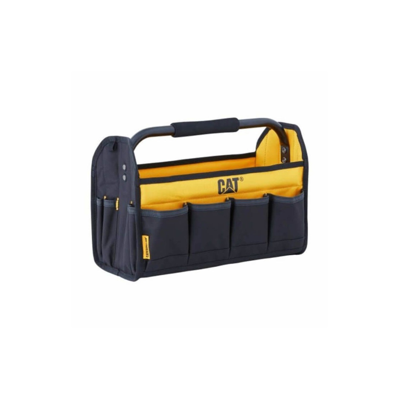 CAT 15" Open Tool Box GP-65045 with 16 external pockets, large top opening, and a sturdy metal handle. Compact, collapsible, and ultra-durable.