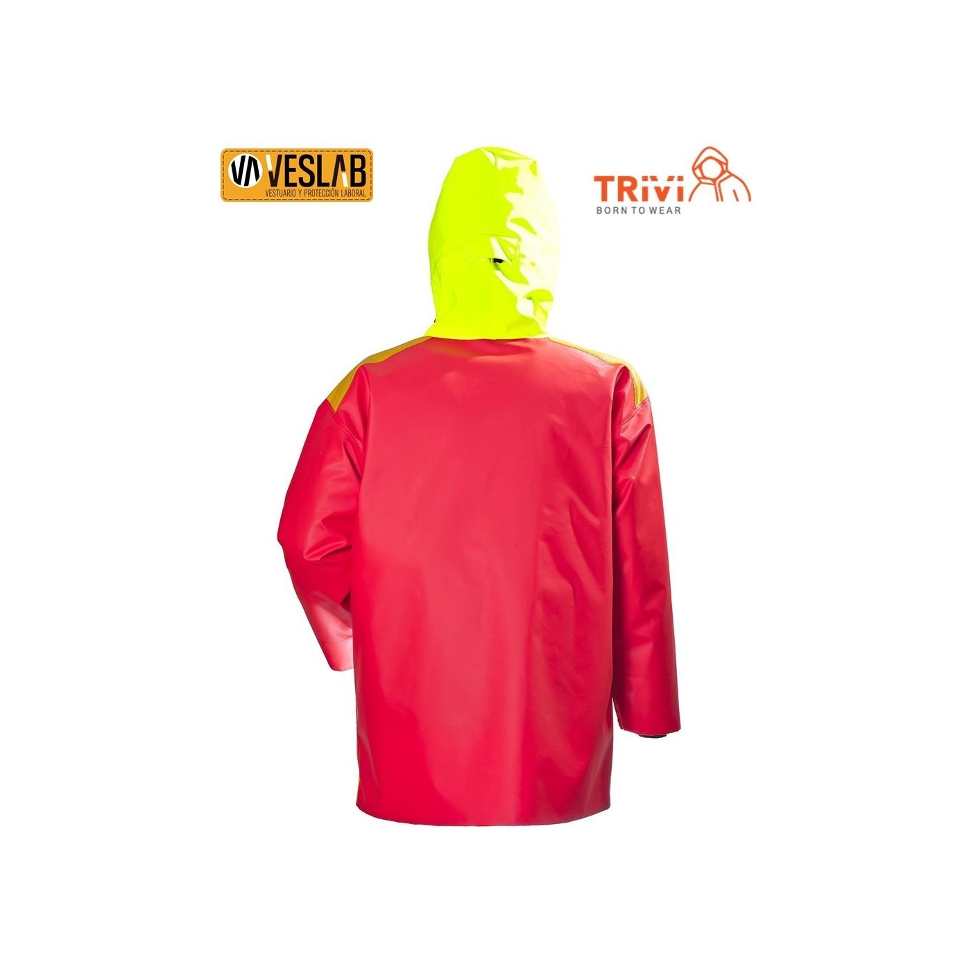 The RNP two-color fishing jacket is made with a ripstop fabric (with the exception of the hood to facilitate mobility during work activity) highly recommended for deep sea fishing due to its toughness. It has a front closure by a PVC zip hidden by a double flap that closes in turn with contact tape.