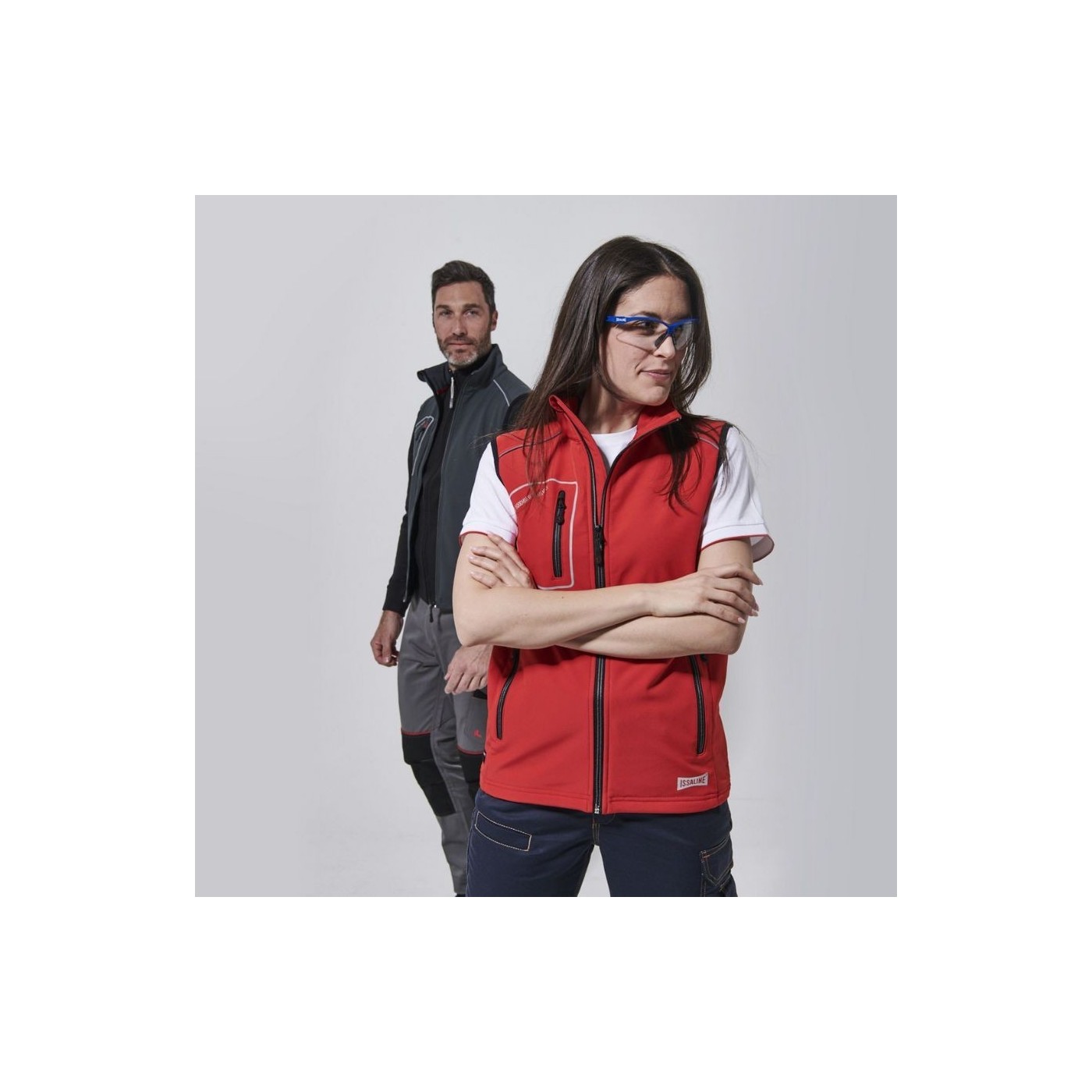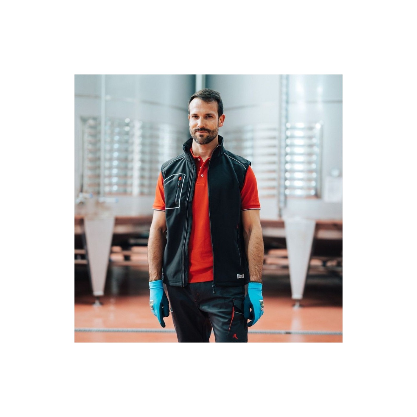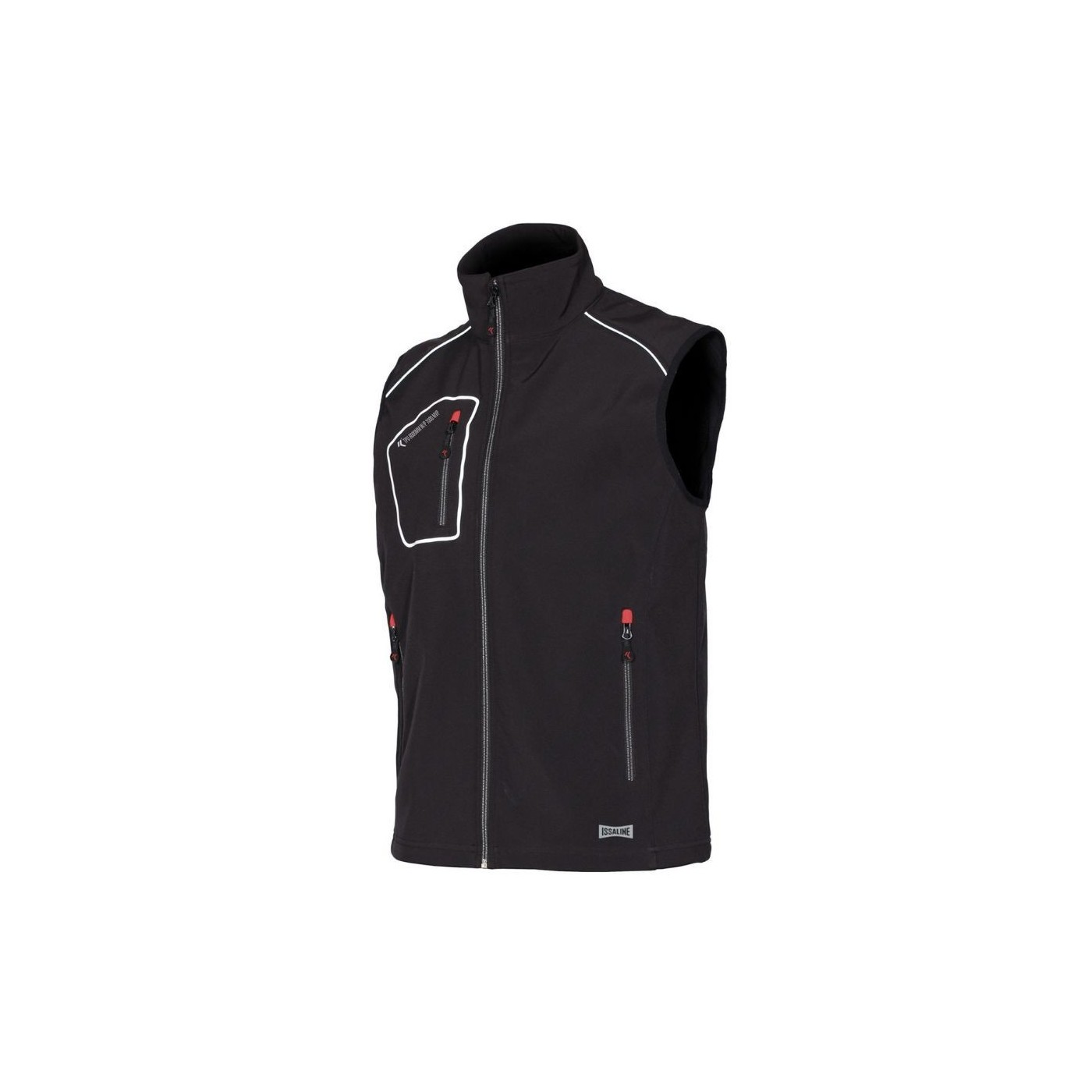 Very versatile soft-shell vest with 3 pockets in particularly soft and technical fabric.