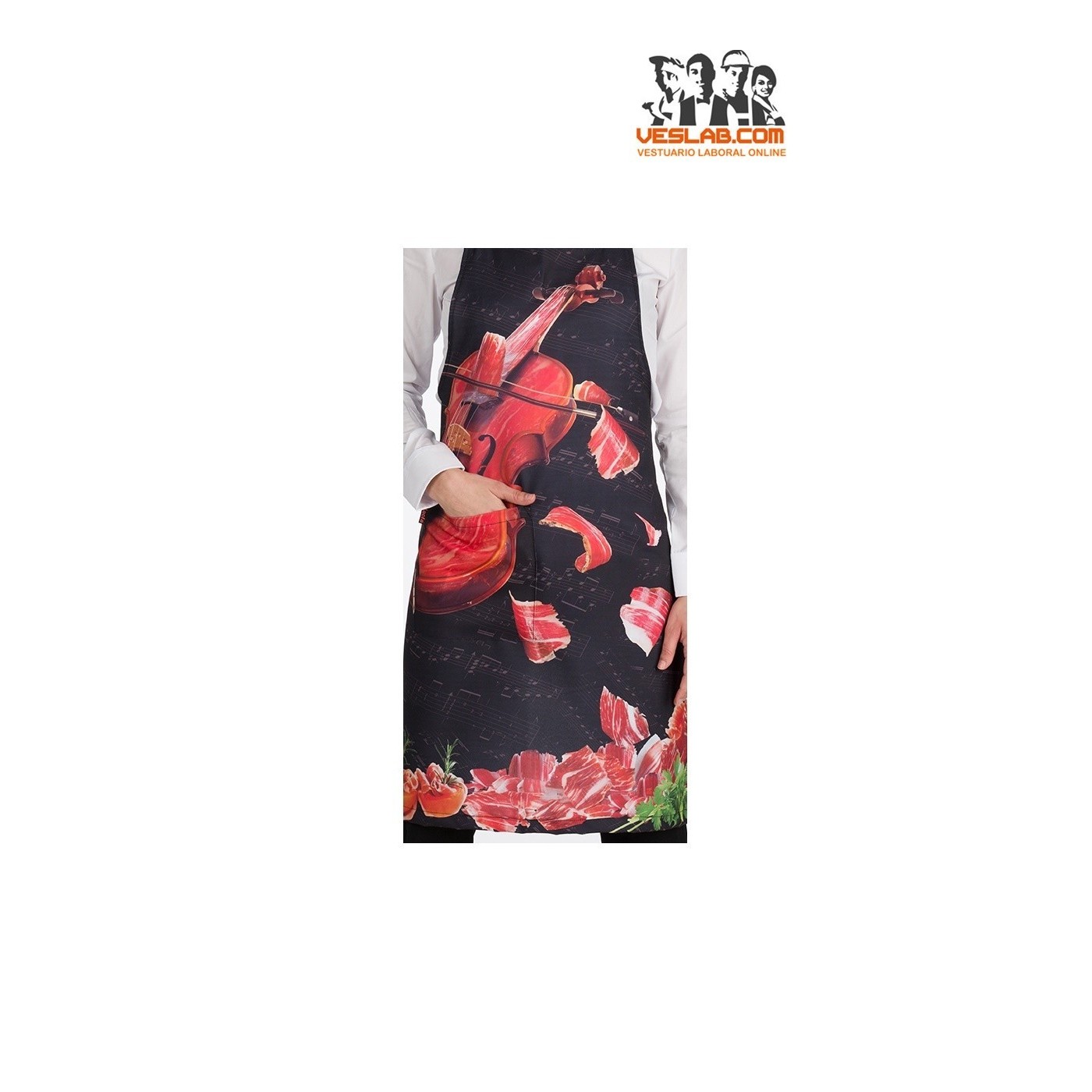 Medium apron with breastplate and pocket "Violin ham print"
