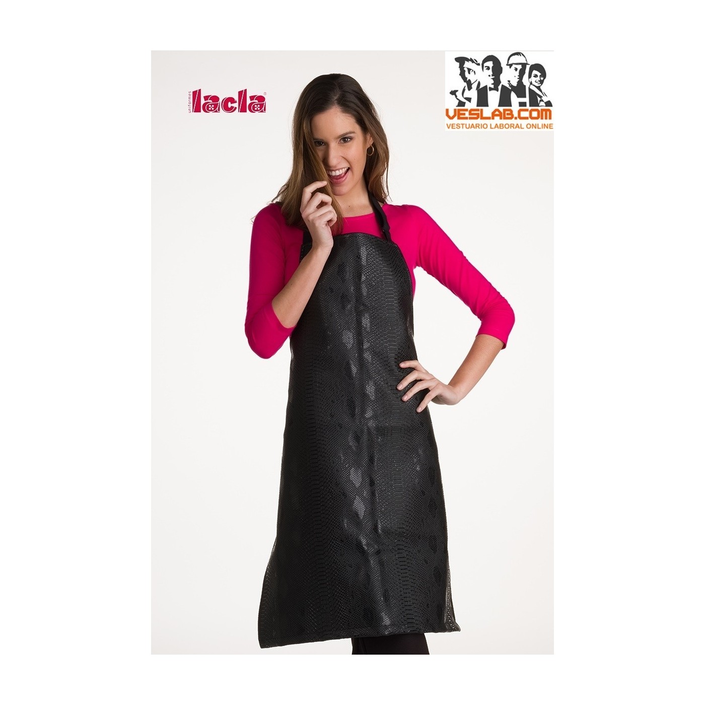 Medium patterned apron with wraparound bib. Adjustable neck strap with buckle. It fits with ribbons that are knotted in the back.