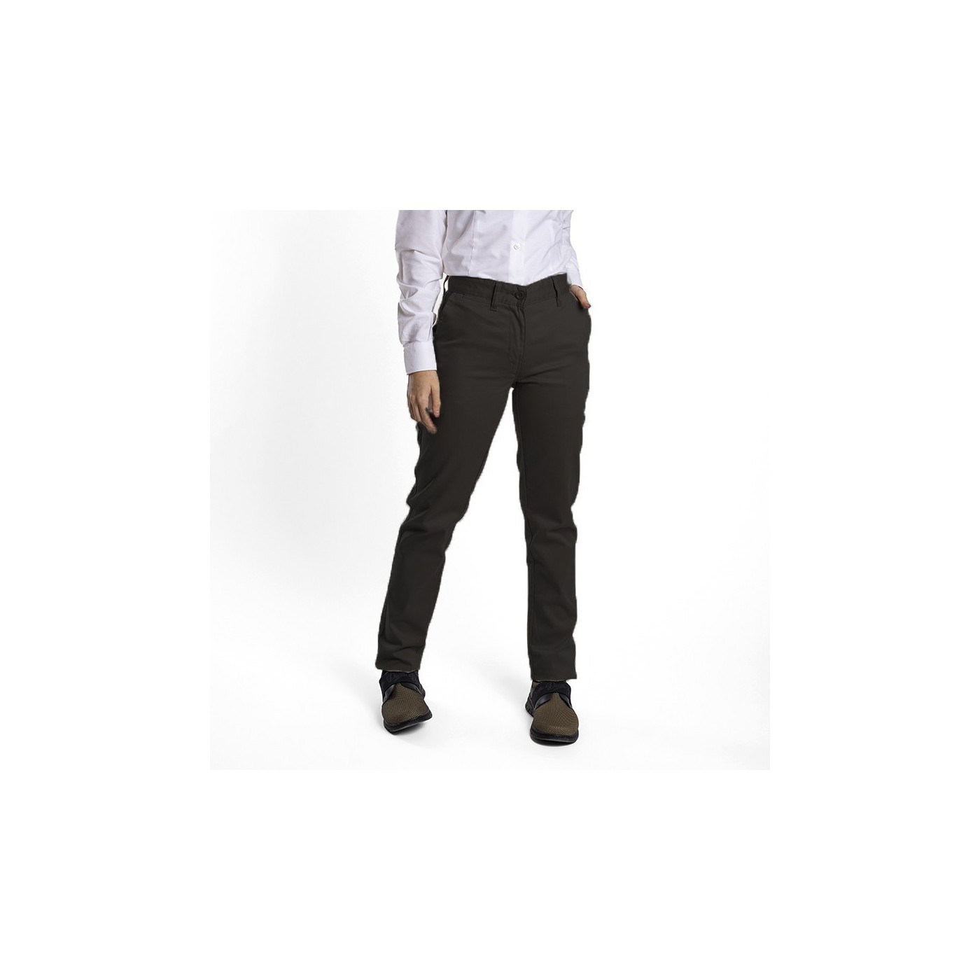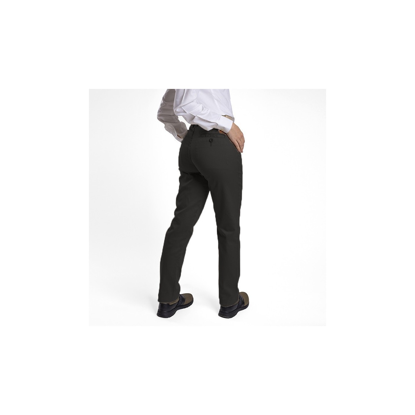 These are straight-cut women's trousers without darts-Chinese type- made of elastic and flexible fabric.