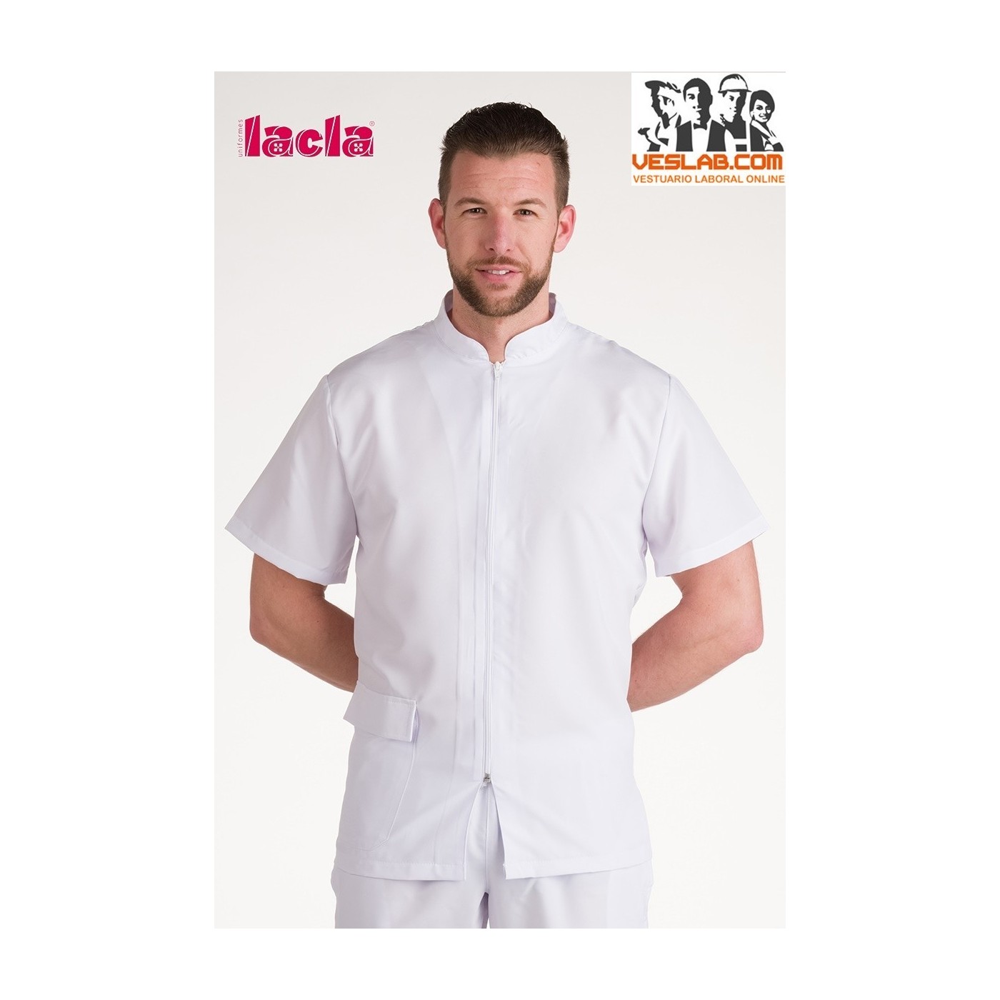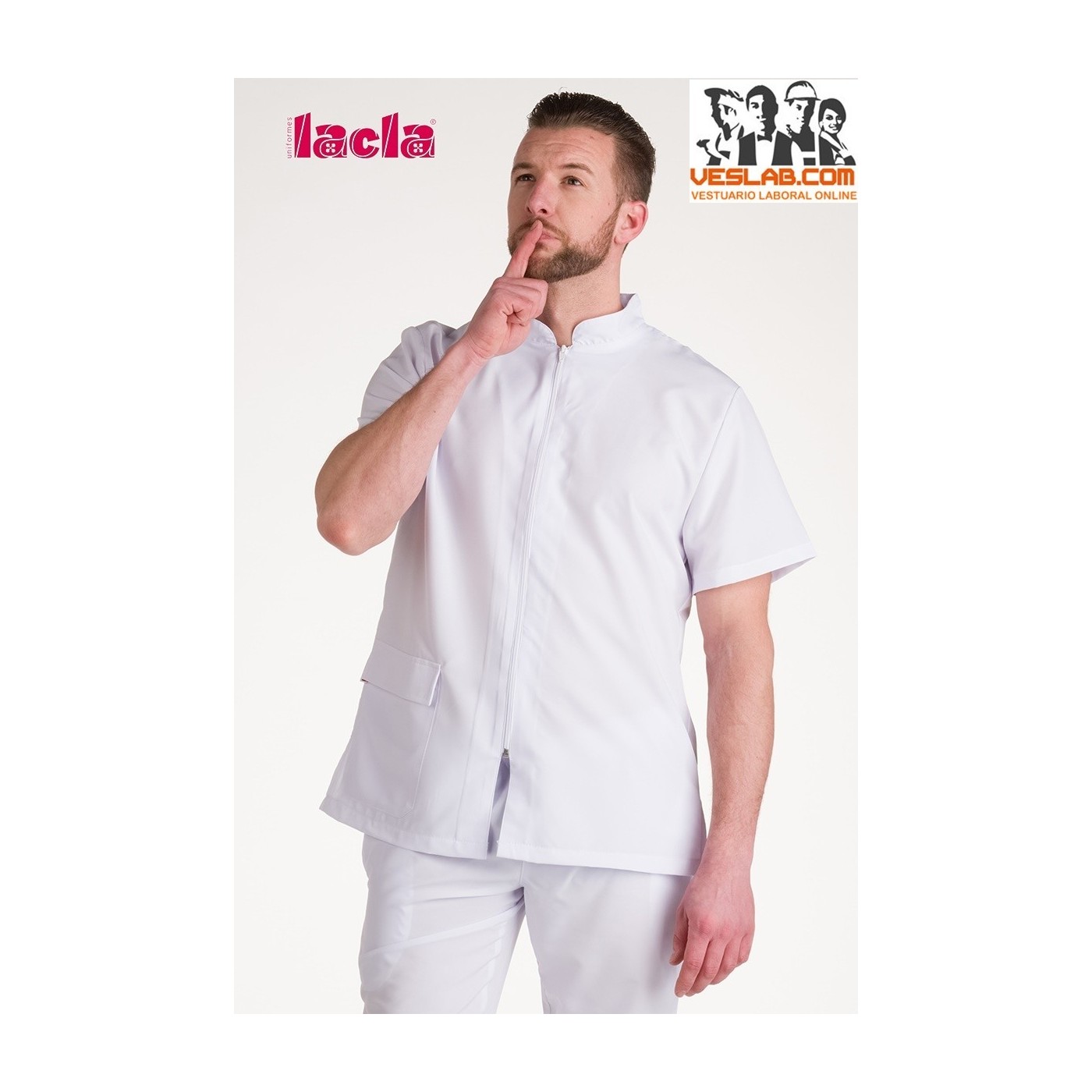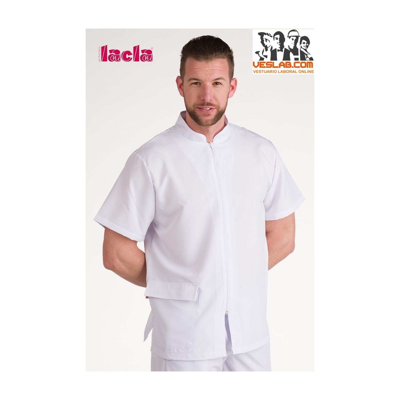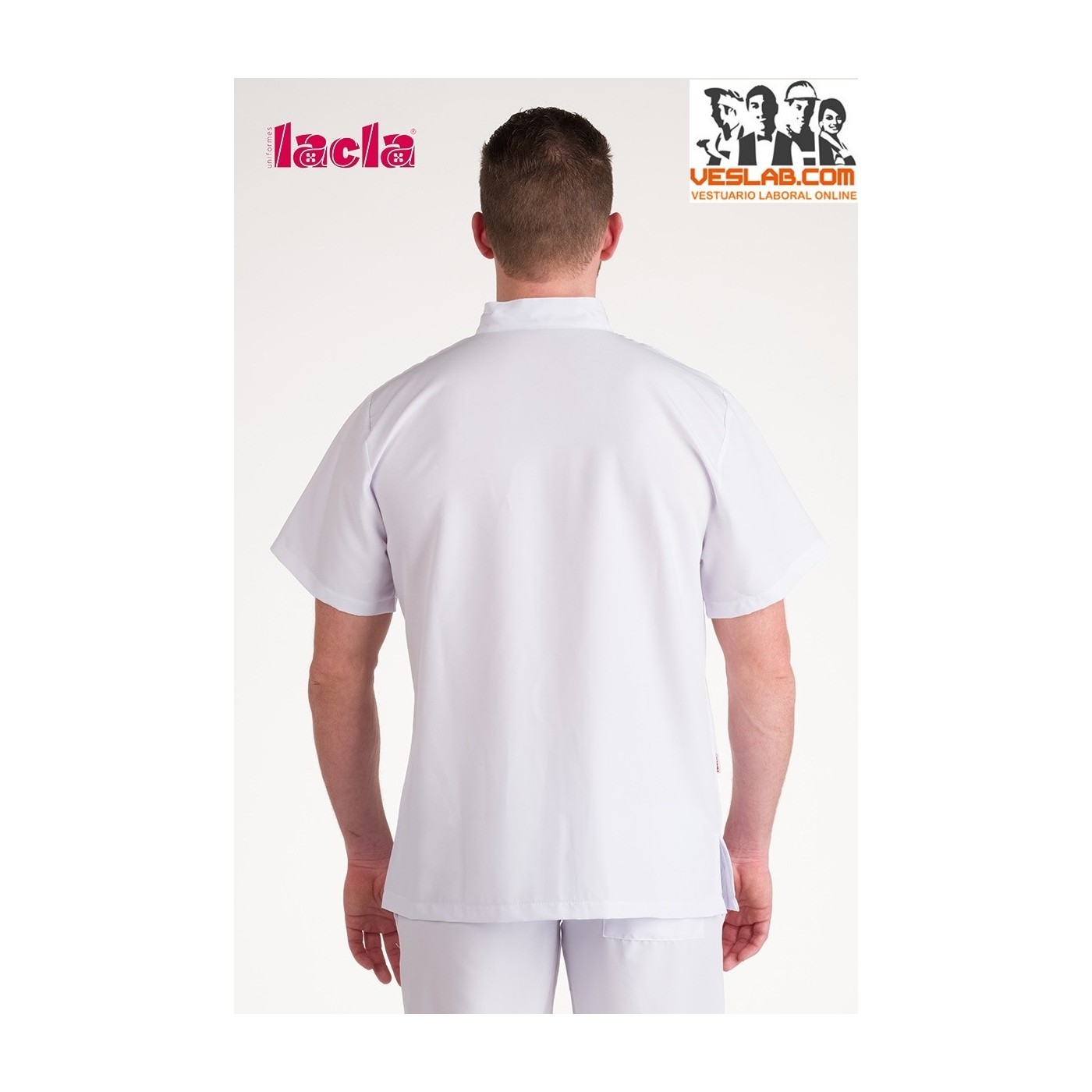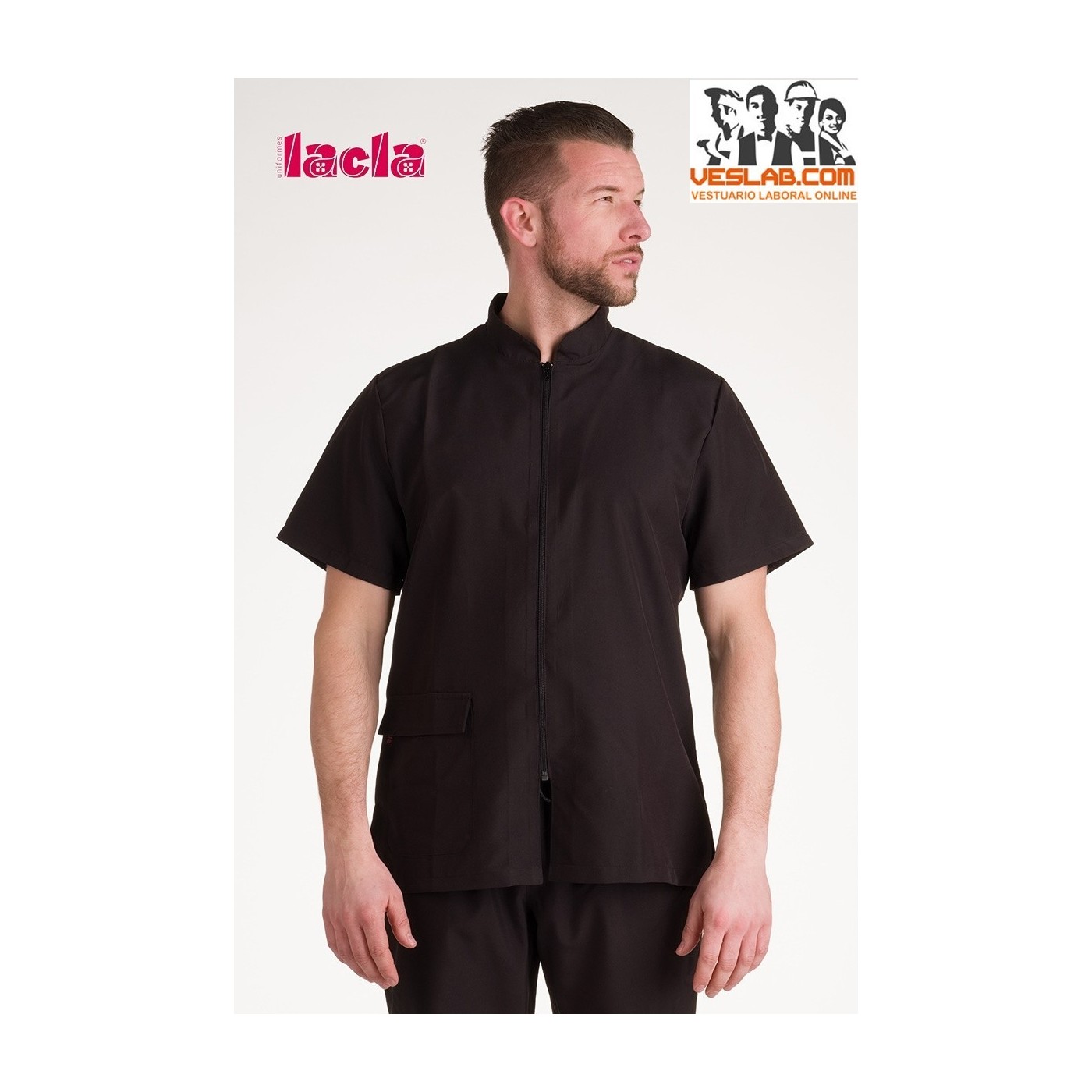MICROFIBRE fabric. Smooth jacket. Mao neck and singing front with vivid satin color. front with selvedges and pockets. buttoned side with rectangular metal brackets. back with tweezers. side openings. short sleeve.