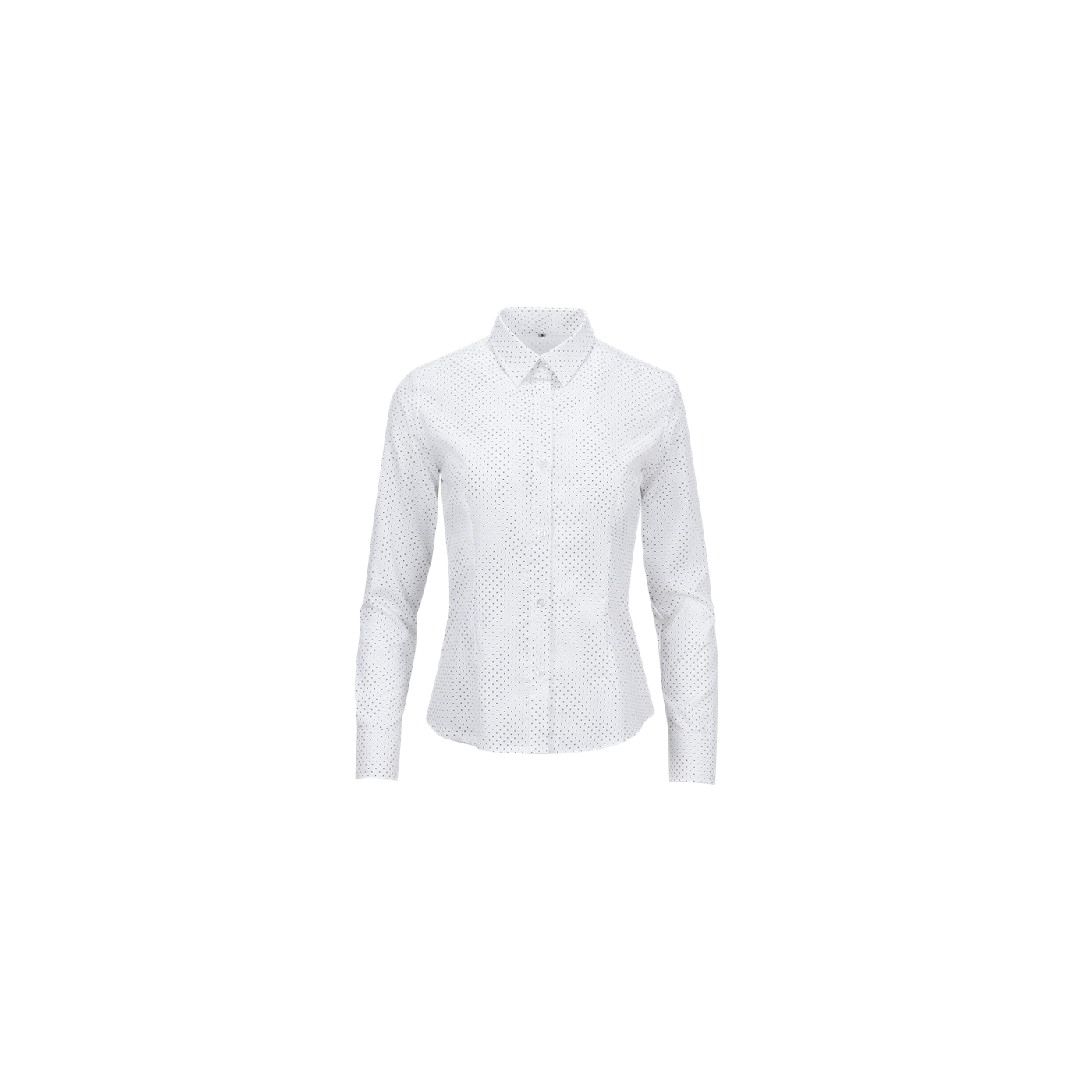 Women’s polka dot blouse with long sleeves, slim fit, and 100% cotton fabric. Elegant design with a neck button for a refined look.