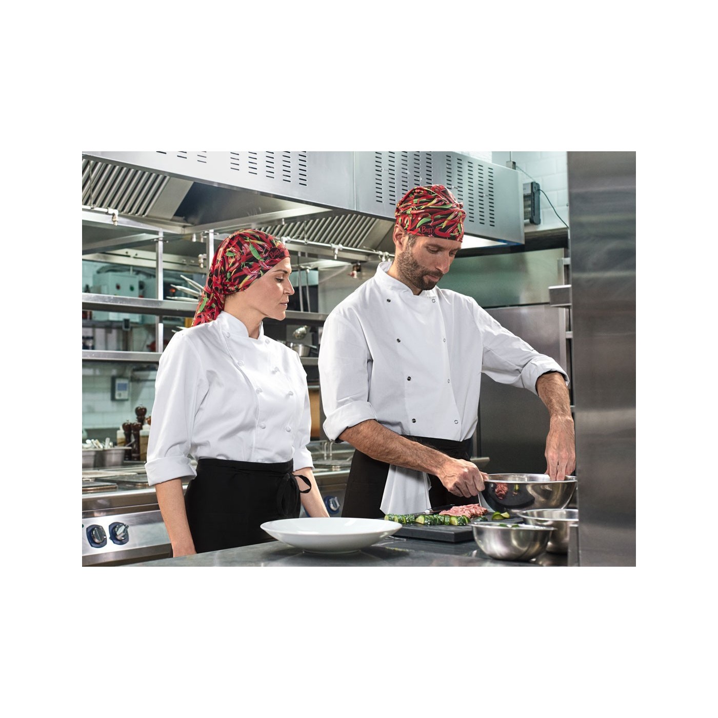 BUFF® Chef hats, designers with chefs and professionals in the HoReCa sector in mind, are recommended as a key element of the uniform to maintain all sanitary standards and thanks to the fact that they have been able to design their ideal chef hats for long hair. The tubulars of the Chef collection, with motifs inspired by food and cooking, are seamless and offer maximum comfort. It is a multifunctional and very versatile product that can be lifted in different ways for greater comfort. The BUFF® Chef bowls for plates and hats are designed for hospitality professionals who need to absorb sweat well and cover the hair, avoiding contact with character and food. Polygiene® antimicrobial technology with this effect provides adequate odor control and fresh comfort.