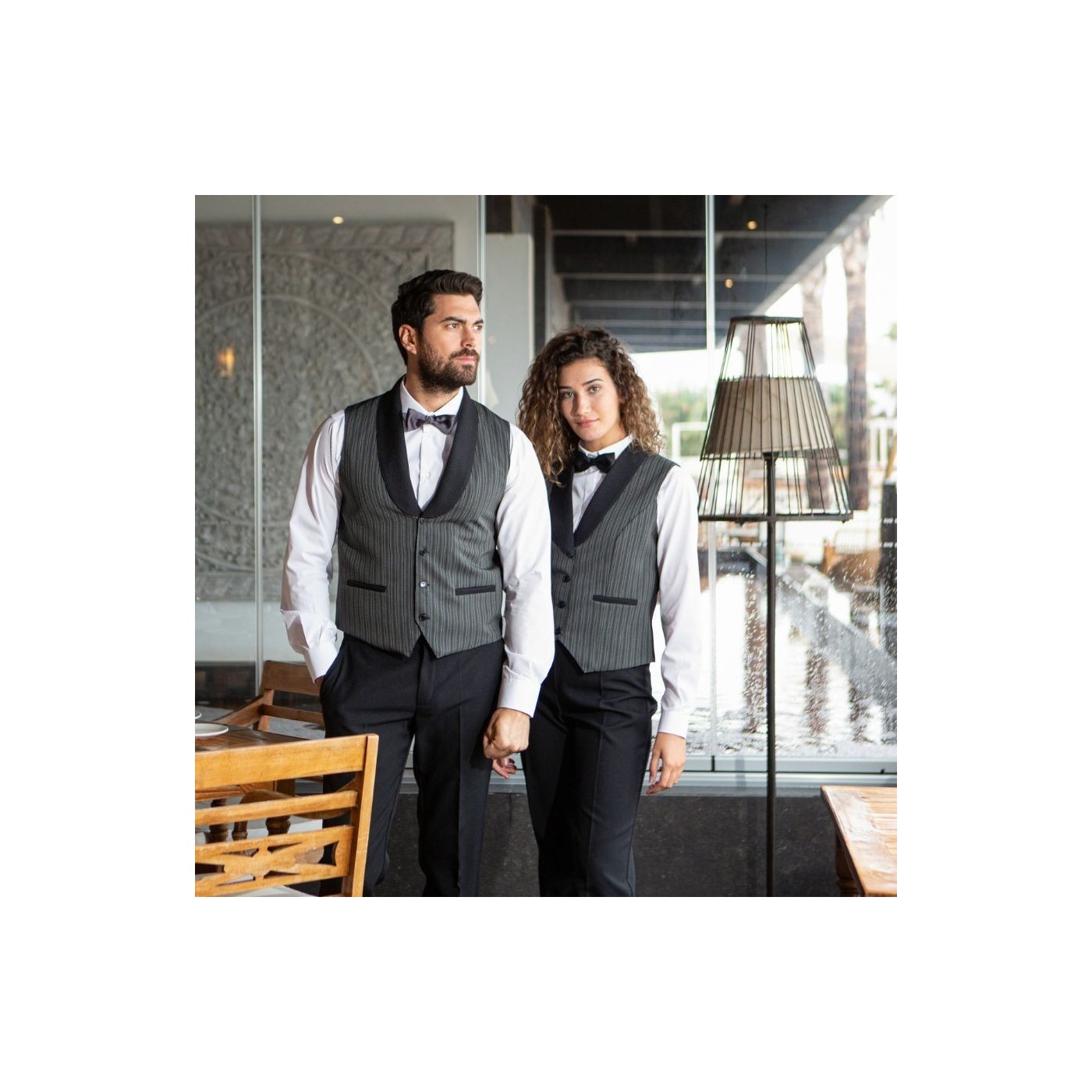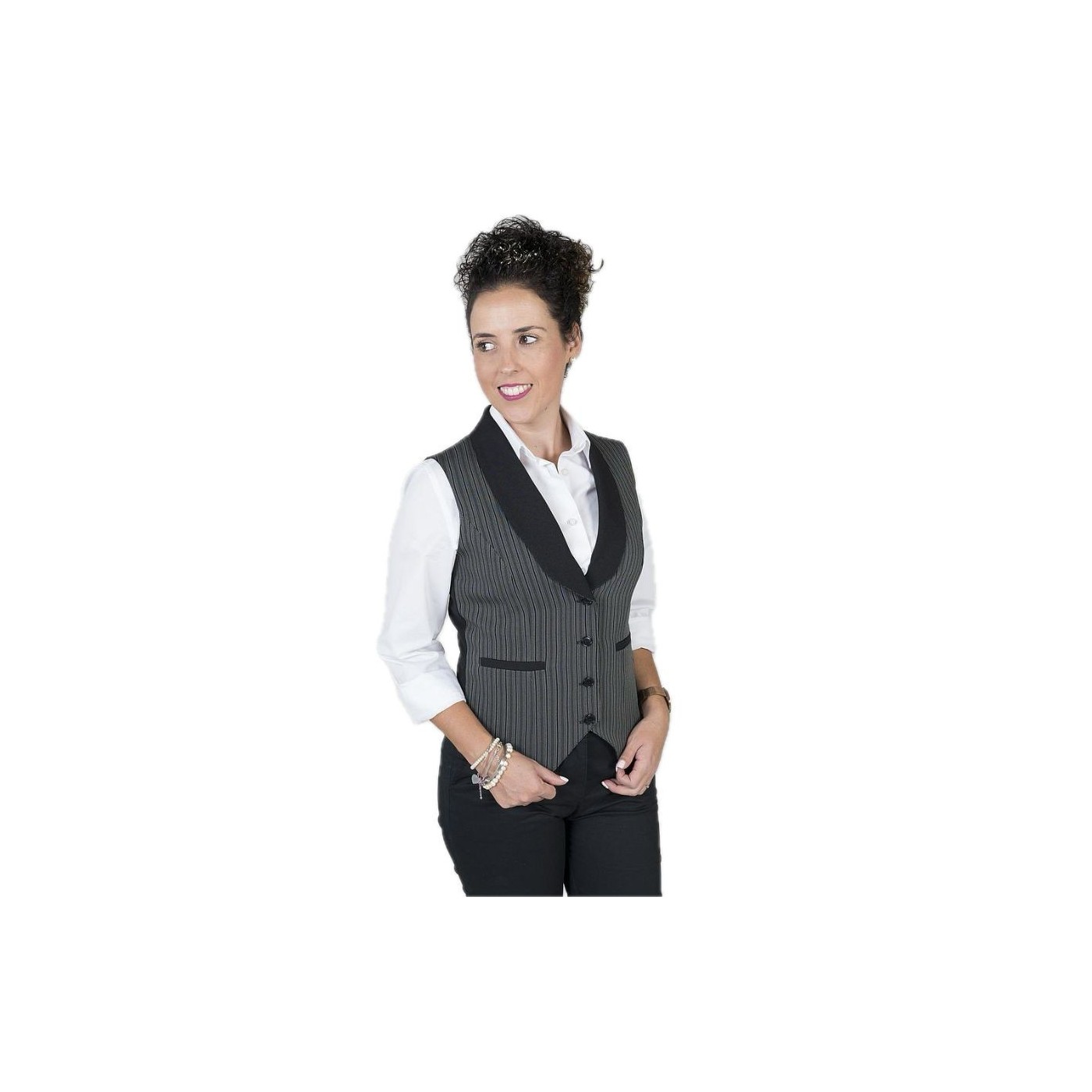 Stand out in the hospitality environment with style and functionality. The CAMPERO waitress vest by Gary's is more than just a work garment; it is a fashion statement that combines the best of elegance and rustic style. With a design inspired by country fashion, this vest features gray stripes that add a touch of distinction to any uniform.