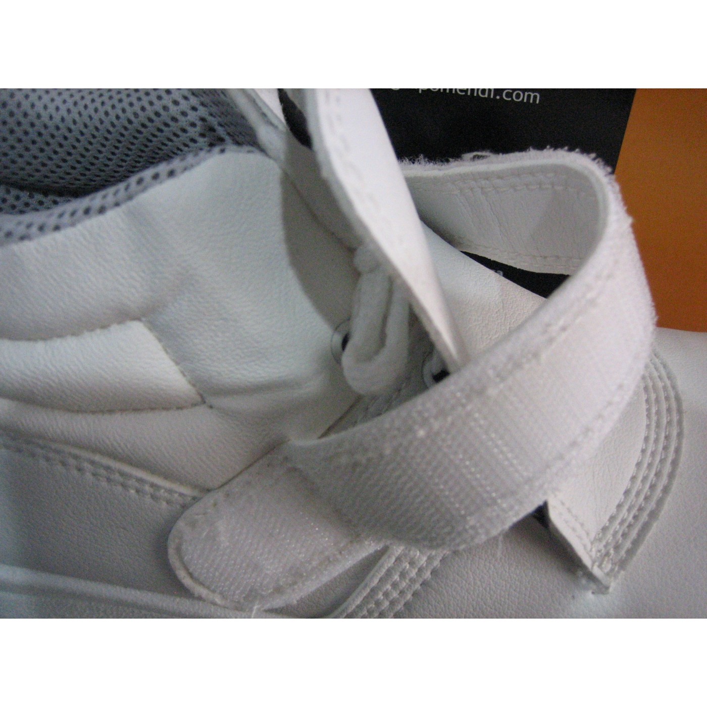 The Mendi Nemesis Boot in water-repellent white microfiber delivers safety and comfort, featuring an anti-slip sole with drainage channels, great flexibility, and an antibacterial insole with anti-fatigue heel bubble.