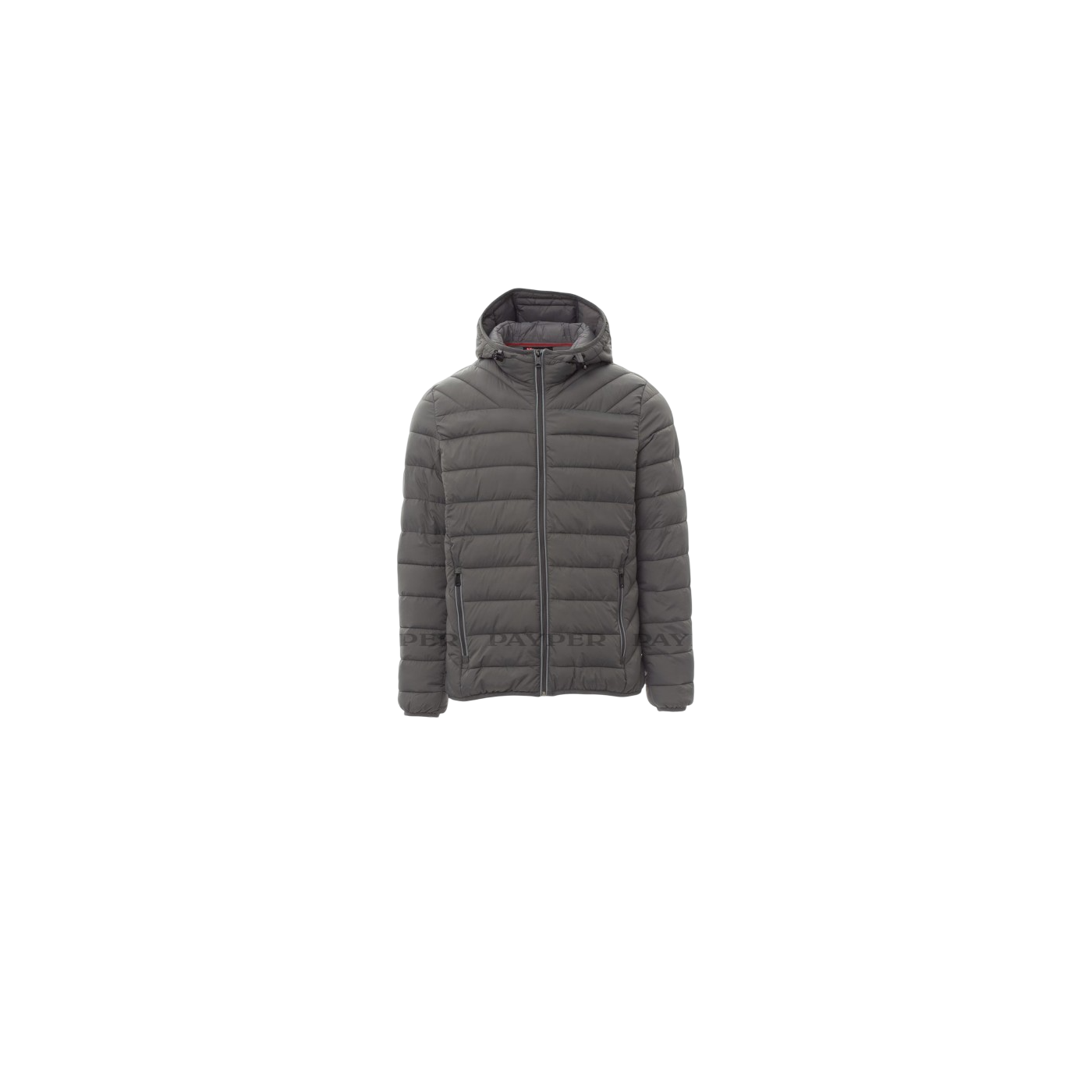 It is a men's jacket, with a 5 mm plastic zipper with a metal cursor, with a thin edge on the cuffs and waist. It contains two external pockets. The interior is padded with polyester feather effect, and has two pockets.