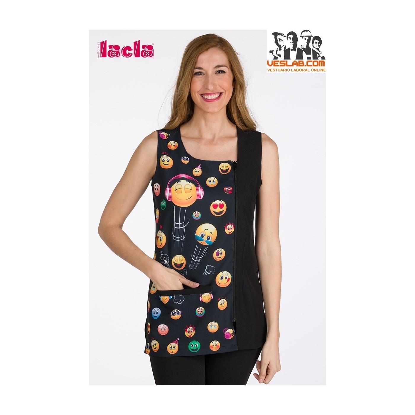 S / M pocket zipper jacket "Funny emoticons" Jacket with chest clip and round neckline, 1 printed front, side zipper, sisada and a live pocket, fitted garment with clips, side openings. COMPOSITION: 100% POLYESTER / STRECH