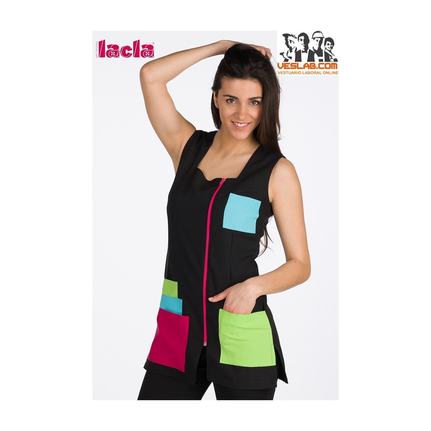 Coats multi-colored pockets, with chest clip and square neckline, side zipper, with multicolored upper and lower pocket, sisada, fitted garment with tweezers, side openings.