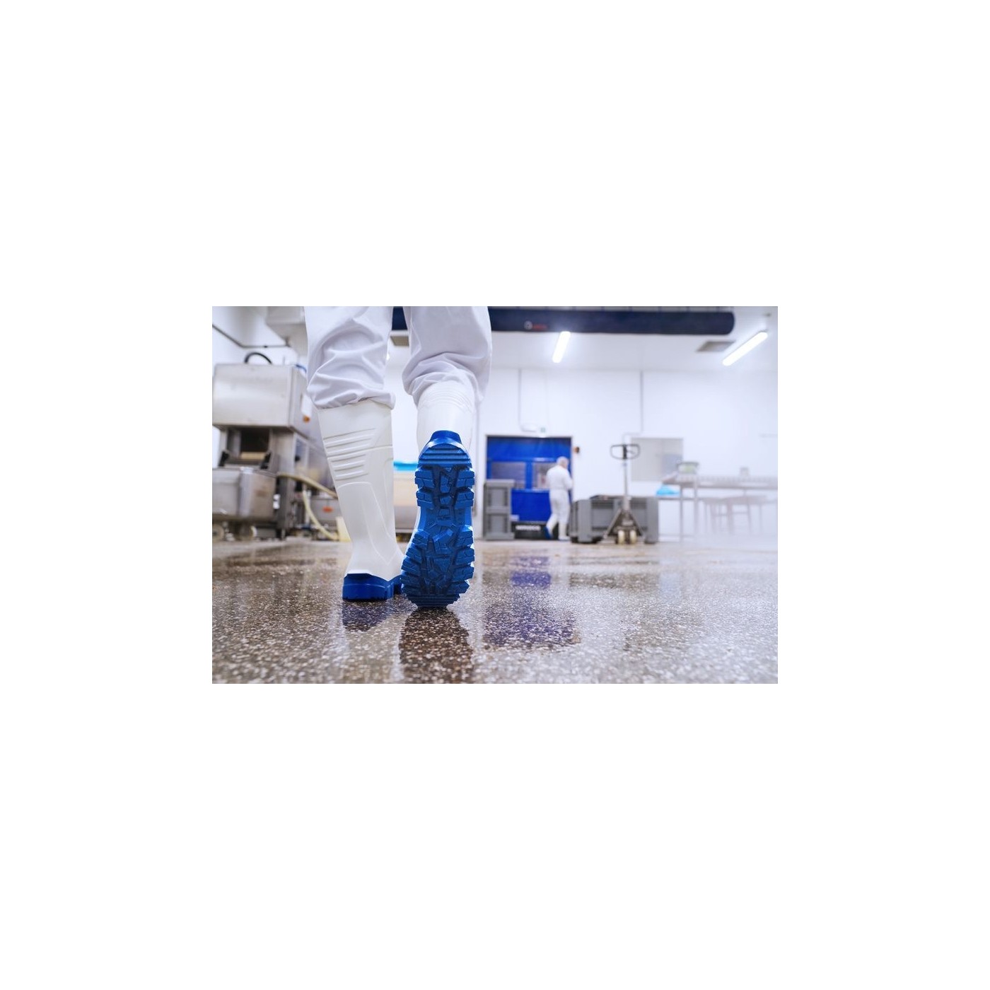 The StepliteX ThermoProtec keeps the professional in the food processing industry safe, dry and warm because they are thermally resistant. In this way you will never have cold feet when you have to carry out activities inside cold rooms or frozen warehouses. This white food safety boot features a protective non-metallic toe cap that prevents interference with metal detectors. It guarantees maximum slip resistance thanks to its SRC certified sole, preventing slips and trips.