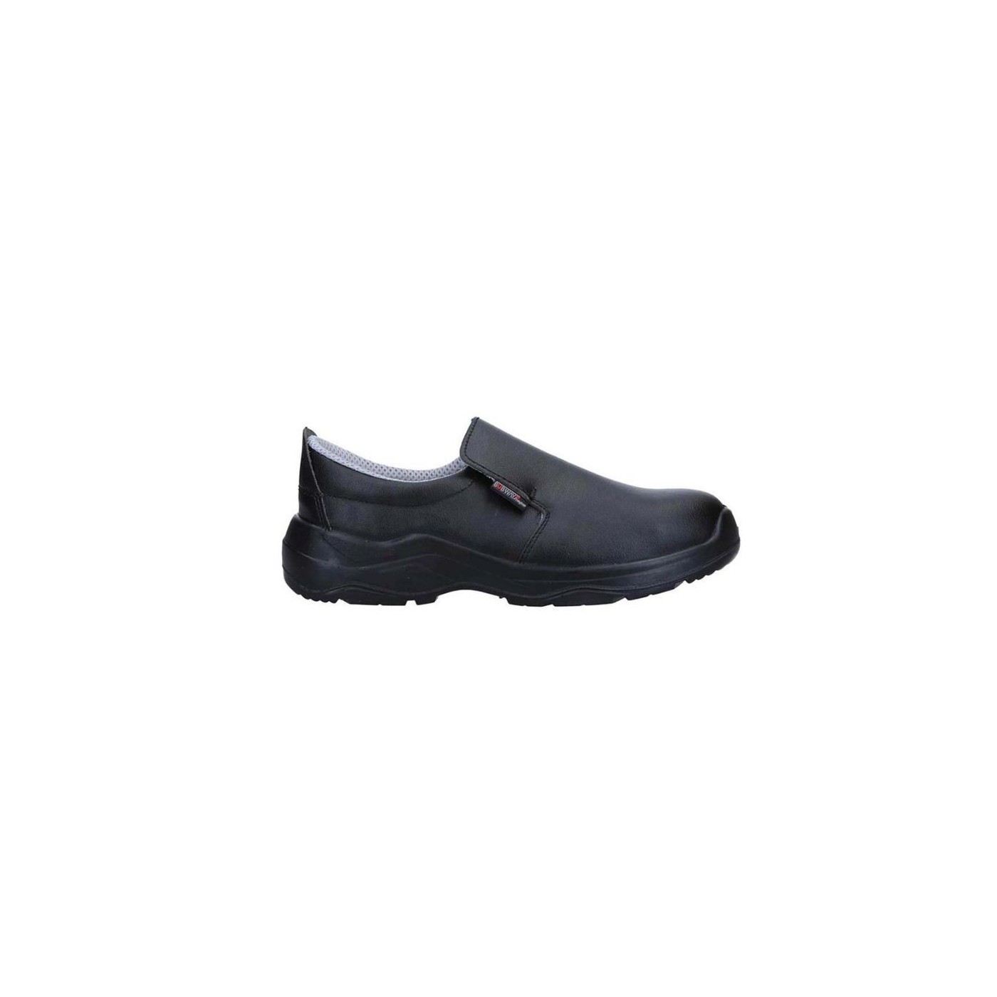 New Nevada safety shoe in black by J'hayber Works. Light, flexible, safety shoe built on a wide last that makes it a very comfortable choice. This shoe has excellent anti-slip properties. The upper is made with microfibre which means that it is impermeable and breathable. The interior lining of the New Nevada model is made of a double mesh fabric, the toe cap of steel and the outsole of bi-density polyurethane. This is an easily-cleaned model with excellent resistance to aggressive agents including chemical, all of which makes it ideal for the food industry. Complies with the European EN ISO 20345:2011 standard, Category: S2 SRC.