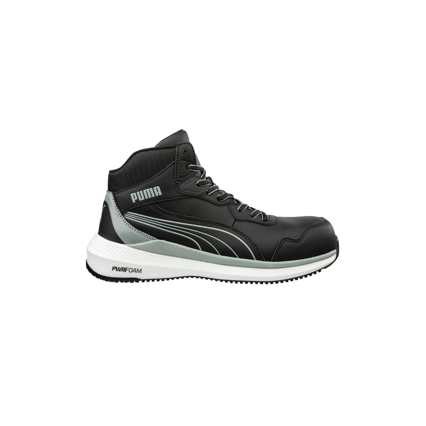 The Puma ZOOM BLACK MID safety boots provide protection with a fiberglass toe cap, heat-resistant slip-resistant sole, and evercushion® insole.