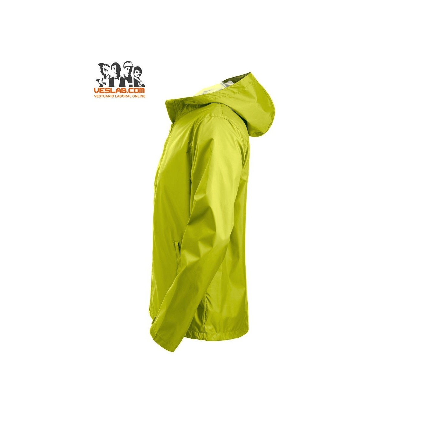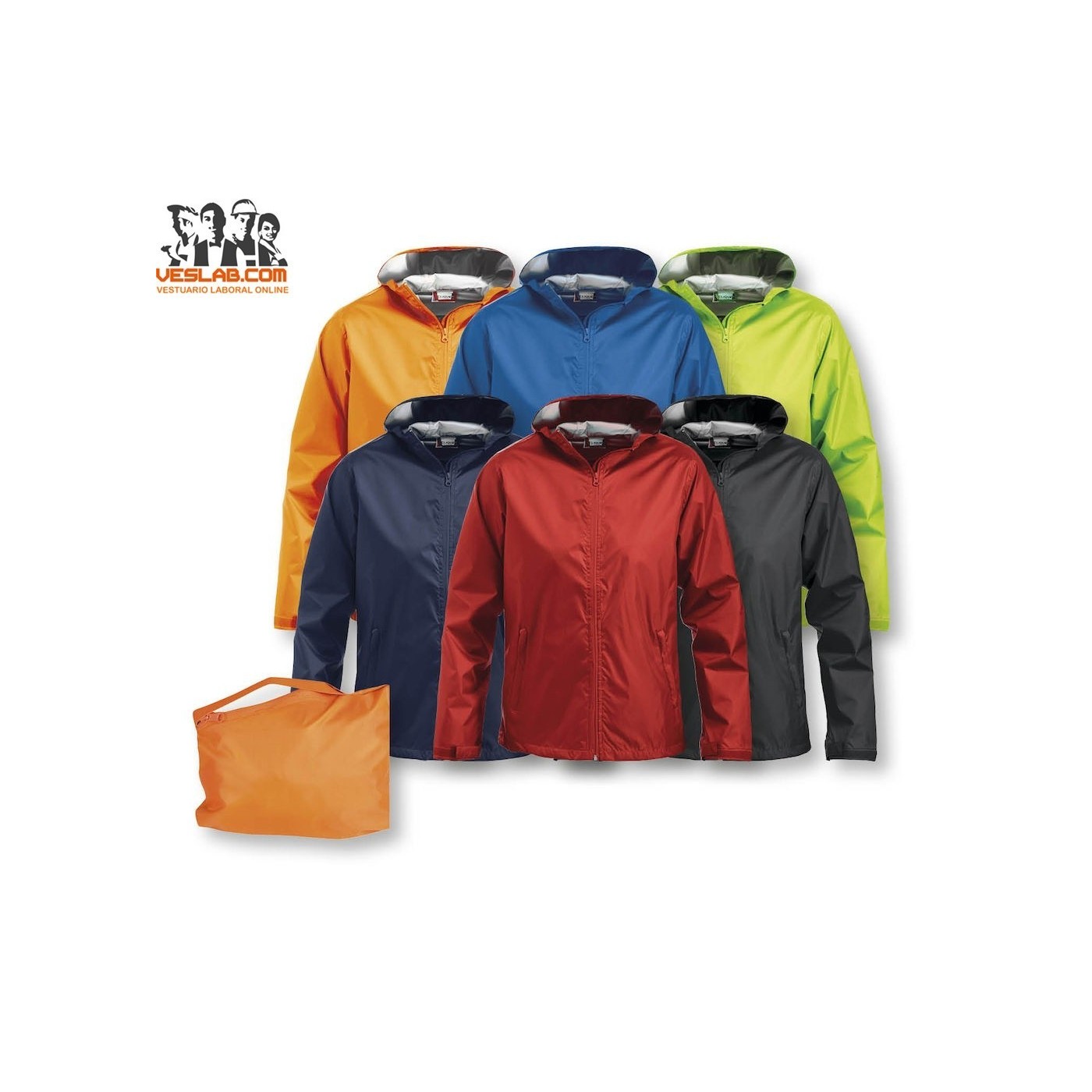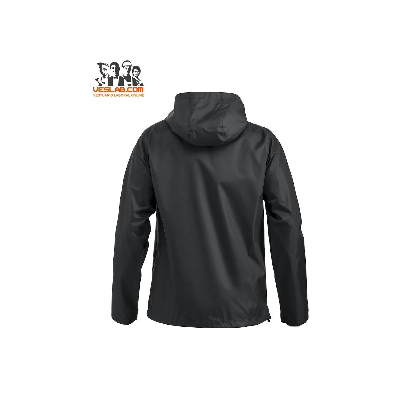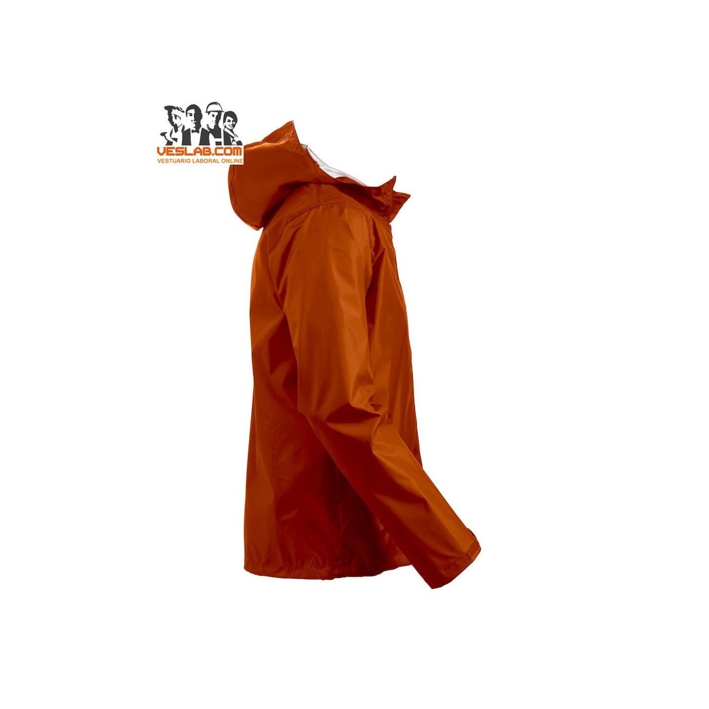 Windbreaker with hood. Two front pockets and elastic fit. Reversible side pocket to store the windcheater in a bag.