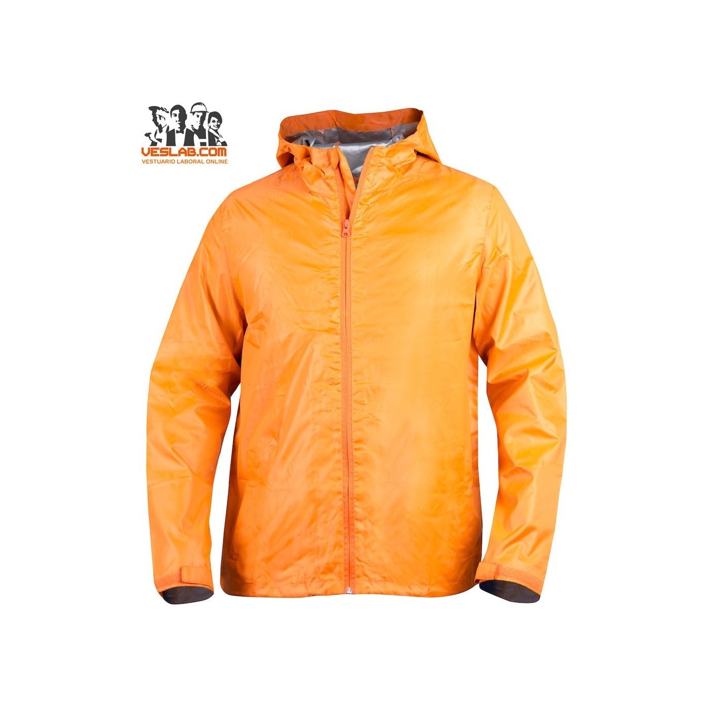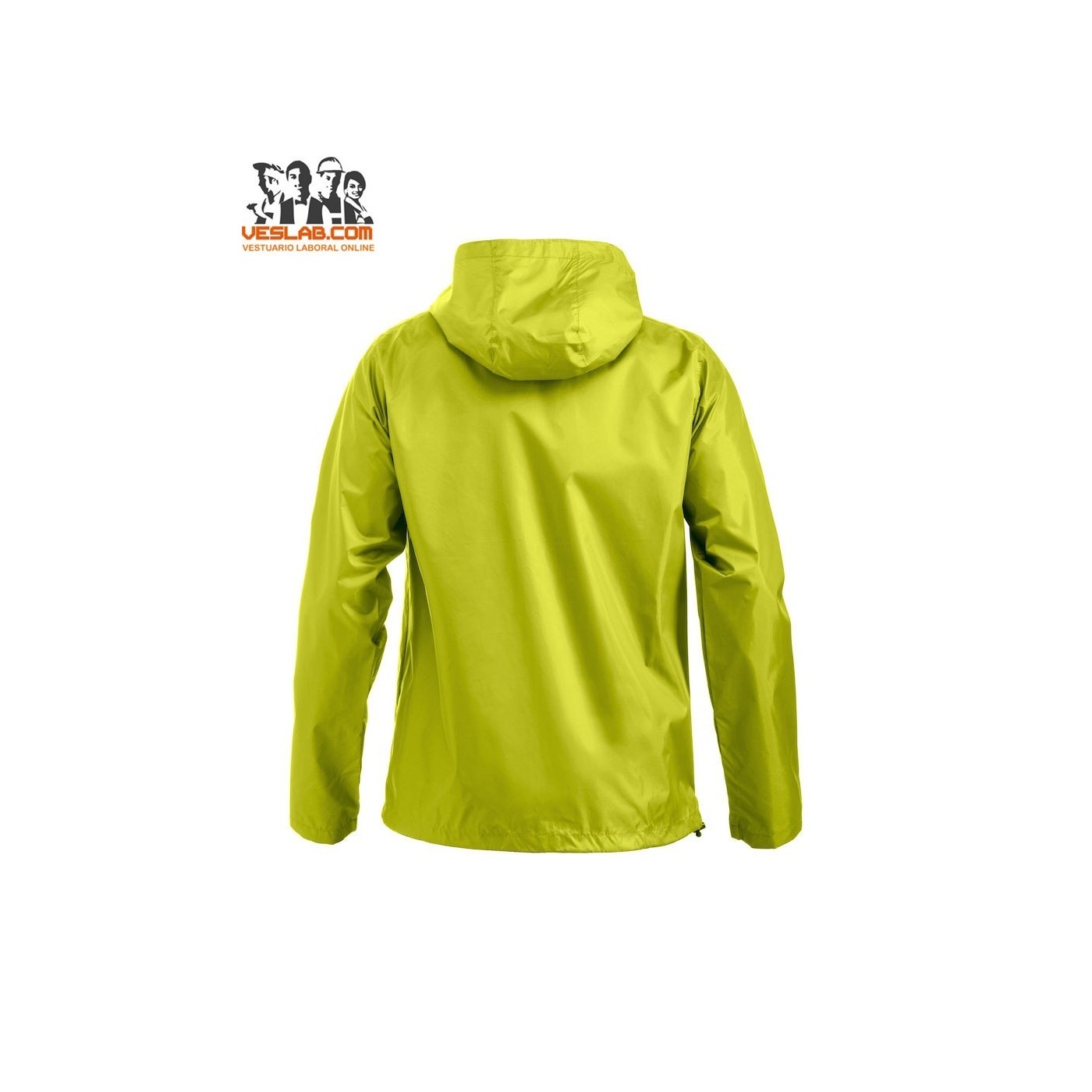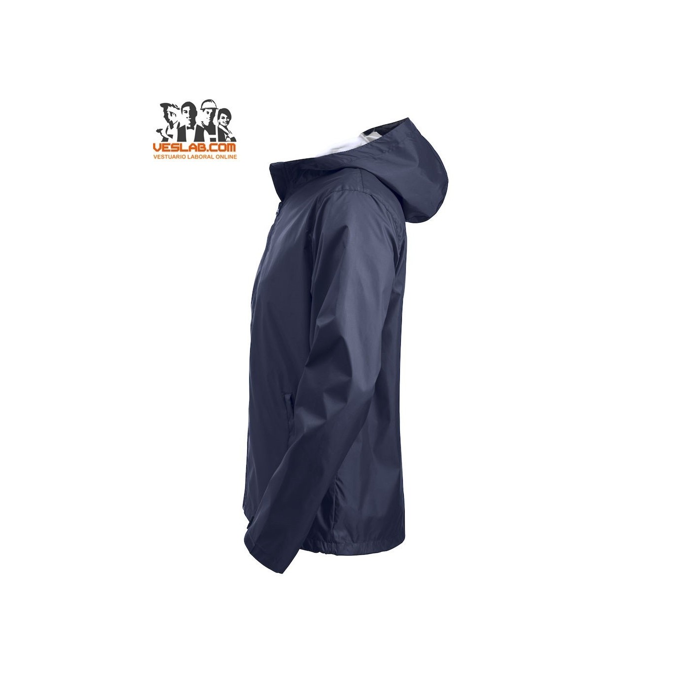 Windbreaker with hood. Two front pockets and elastic fit. Reversible side pocket to store the windcheater in a bag.