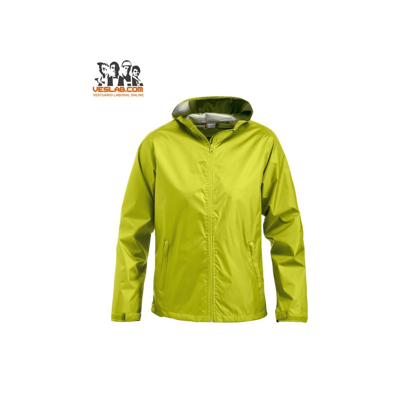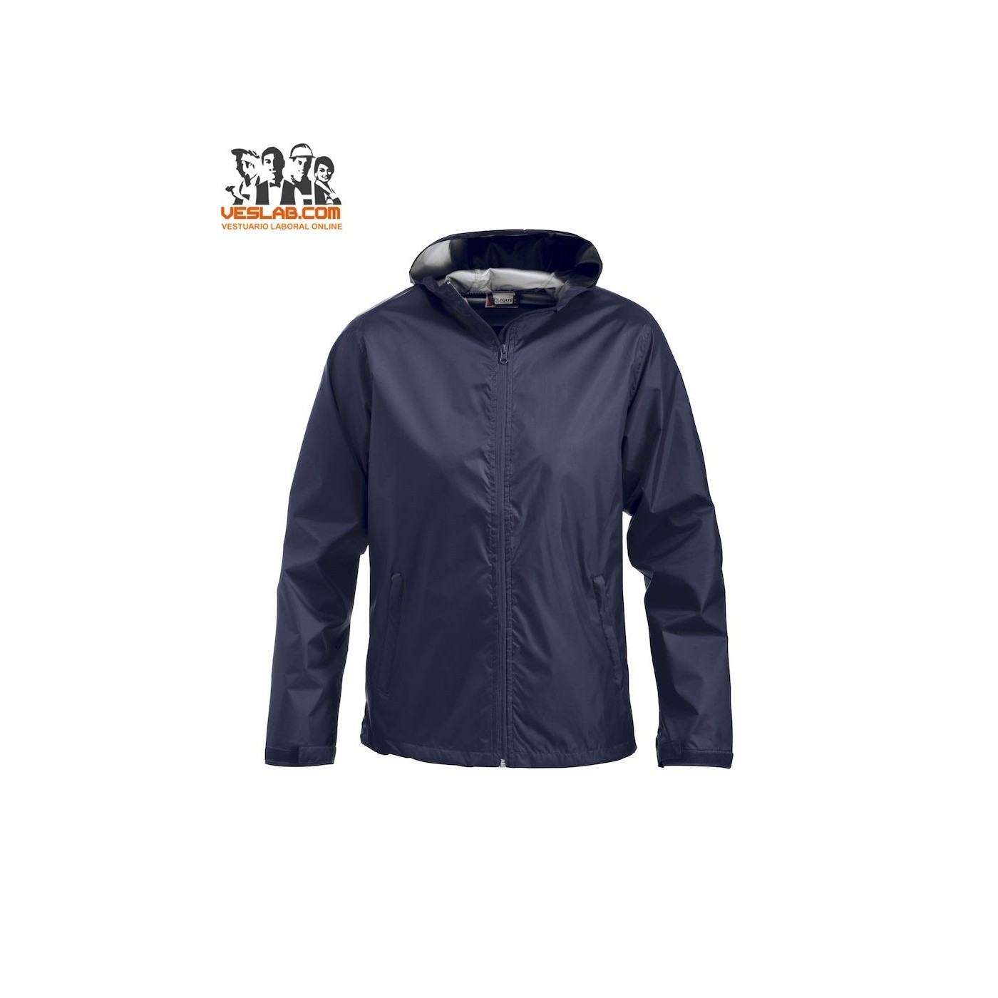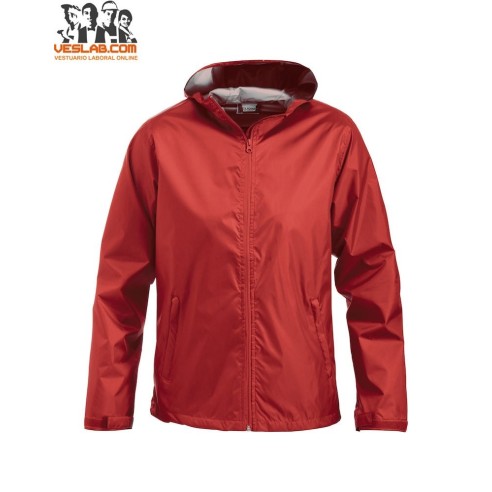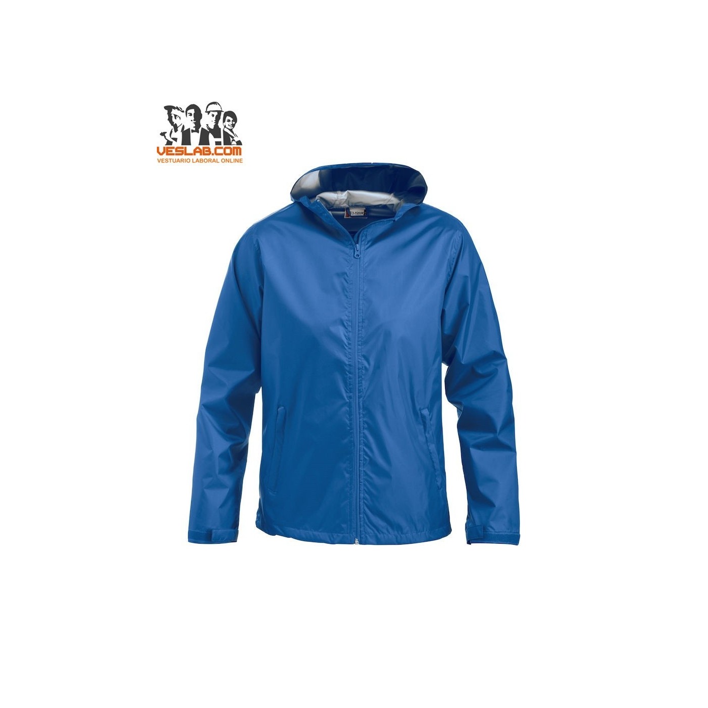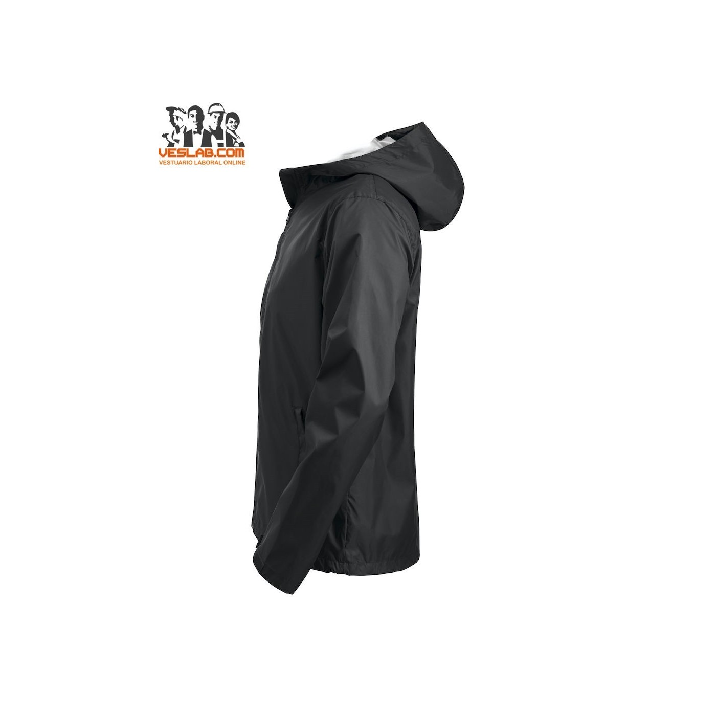 Windbreaker with hood. Two front pockets and elastic fit. Reversible side pocket to store the windcheater in a bag.