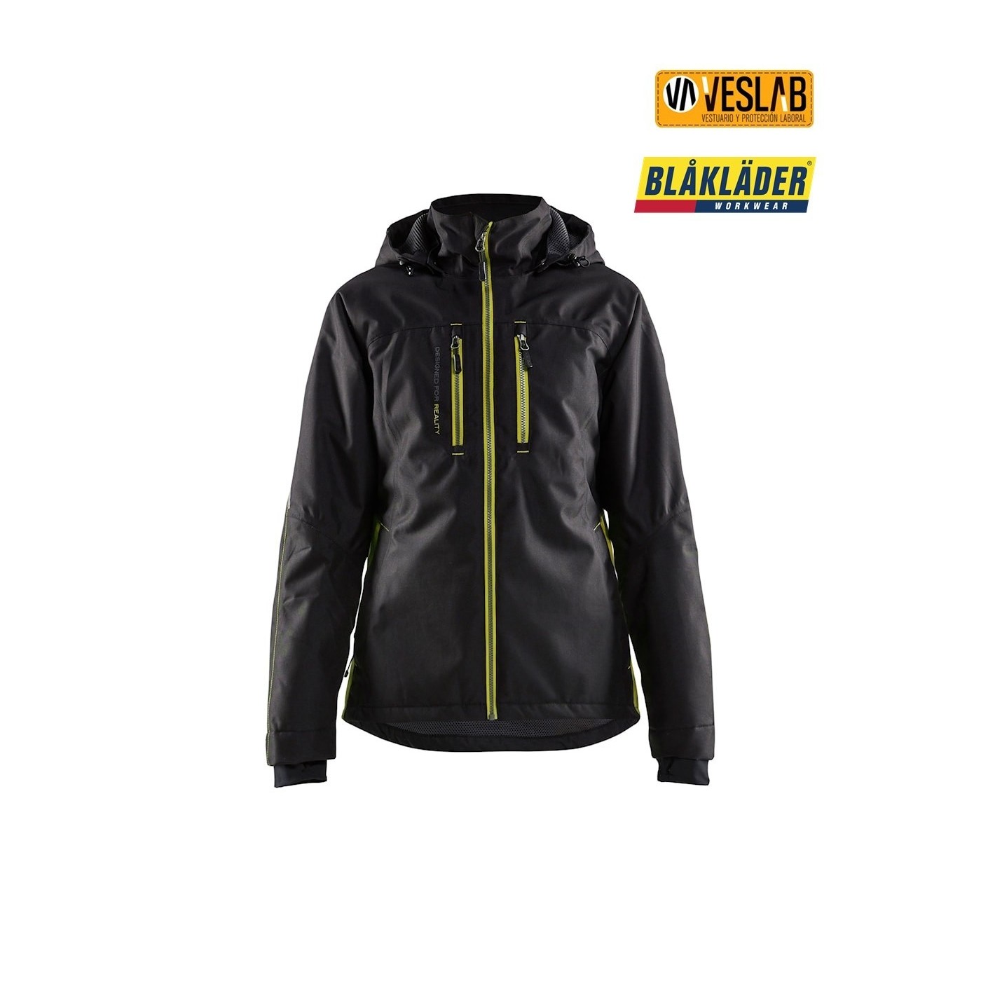 Women's lightweight lined jacket, with a ventilation mesh lining that is ideal for slightly cooler weather conditions. Thanks to its construction, this mesh for ventilation insulates in very good conditions while it perspires and transports moisture. This gives the garment a better fit and great freedom of movement. Wind and rain proof, with breathability and taped seams. This two-tone jacket has a two-way zipper, reflective details and a detachable hood. It belongs to the Unite collection and is available in three different color combinations. Certified according to EN 343.