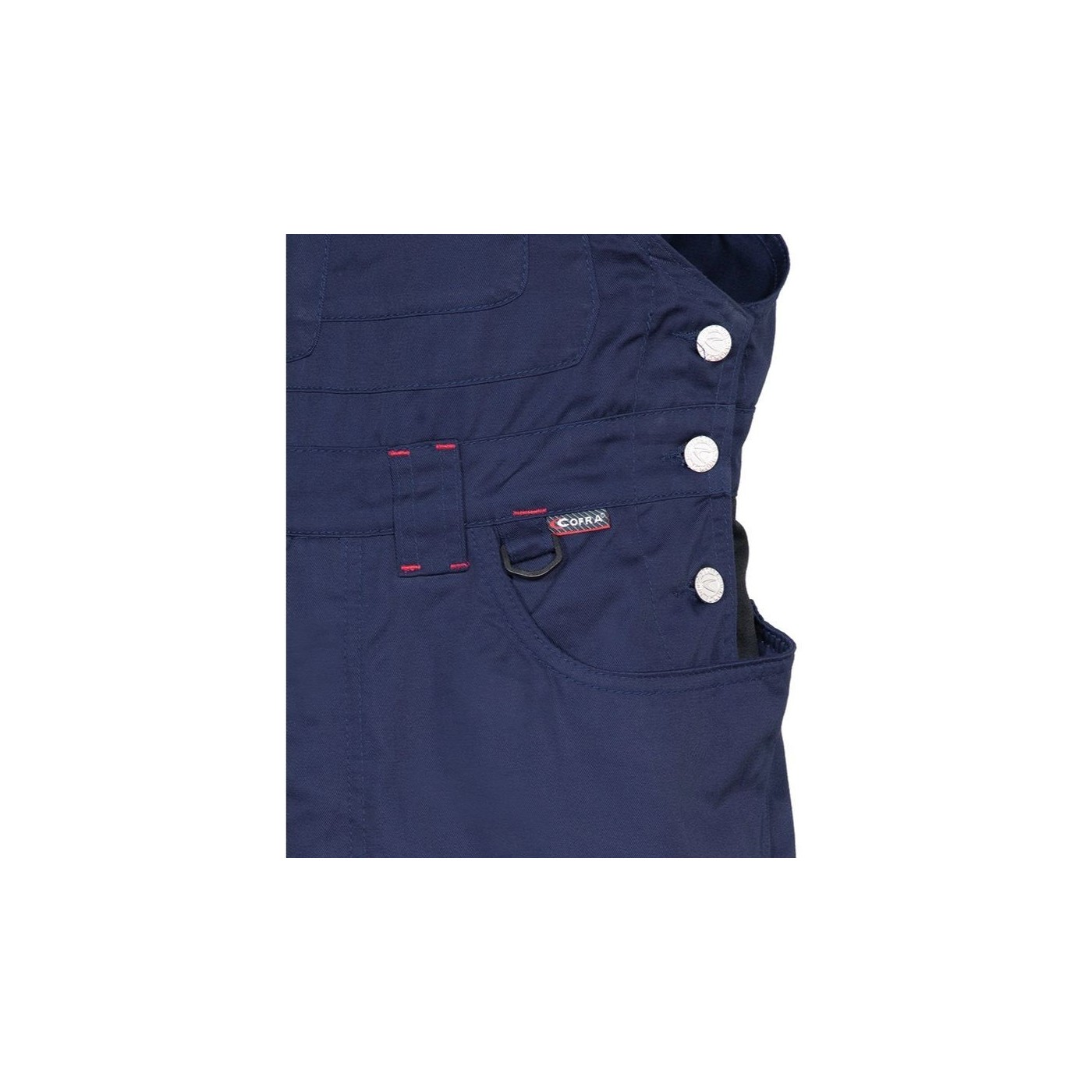The Cofra POCKET work bib combines durability and functionality with spacious pockets, adjustable straps, reinforced knees and crotch, and an insulated mobile phone pocket. Made of cotton and polyester, it is ideal for construction, industry, and logistics.