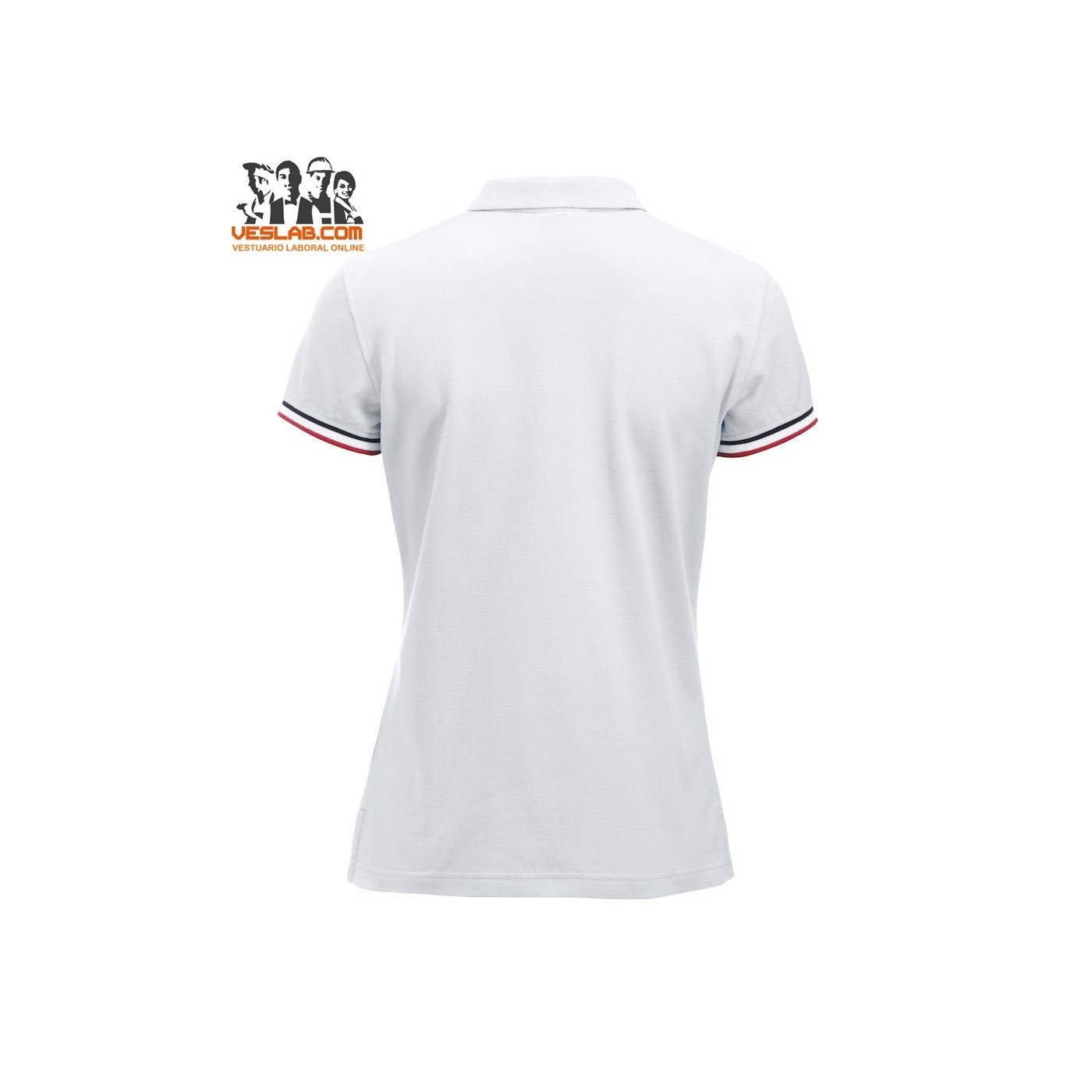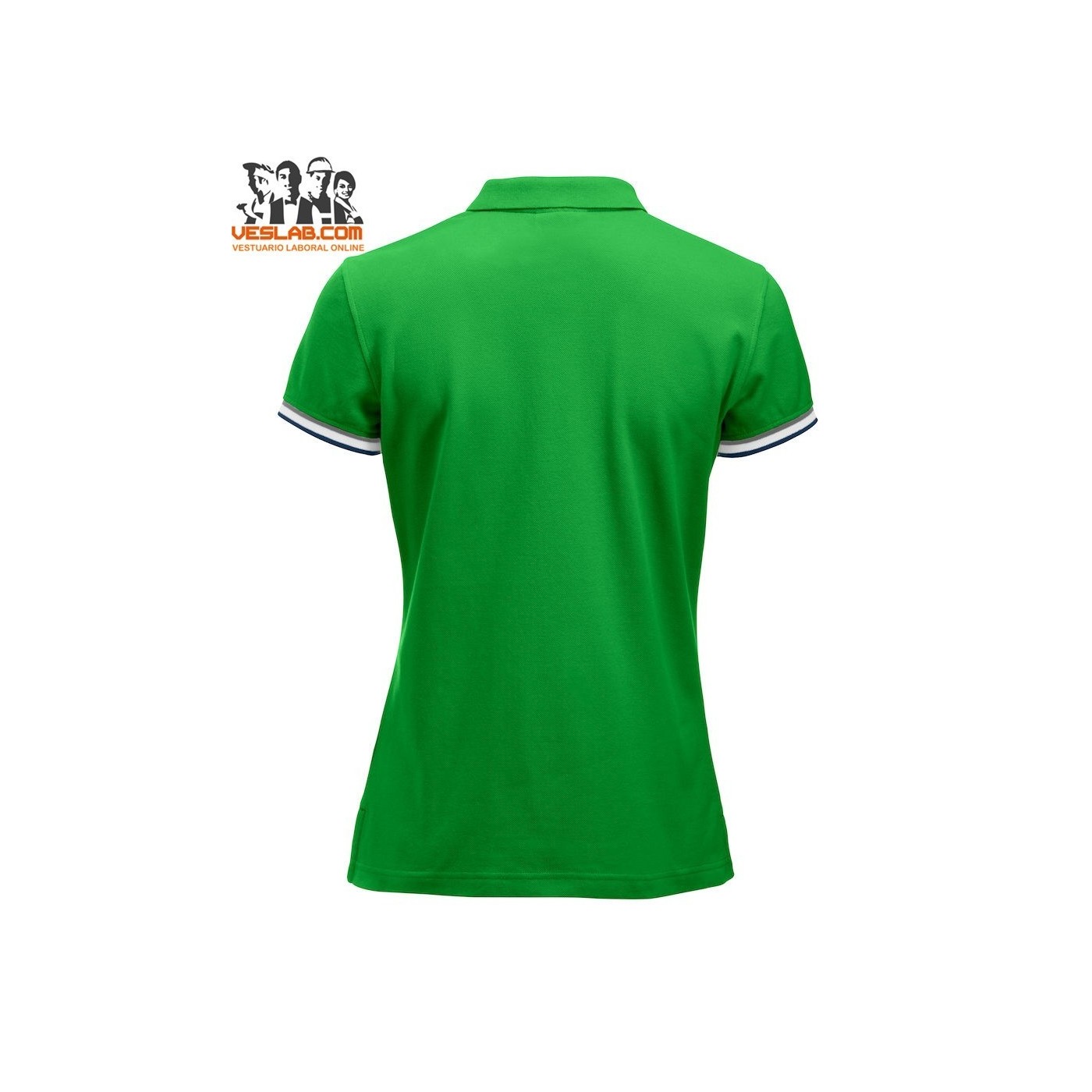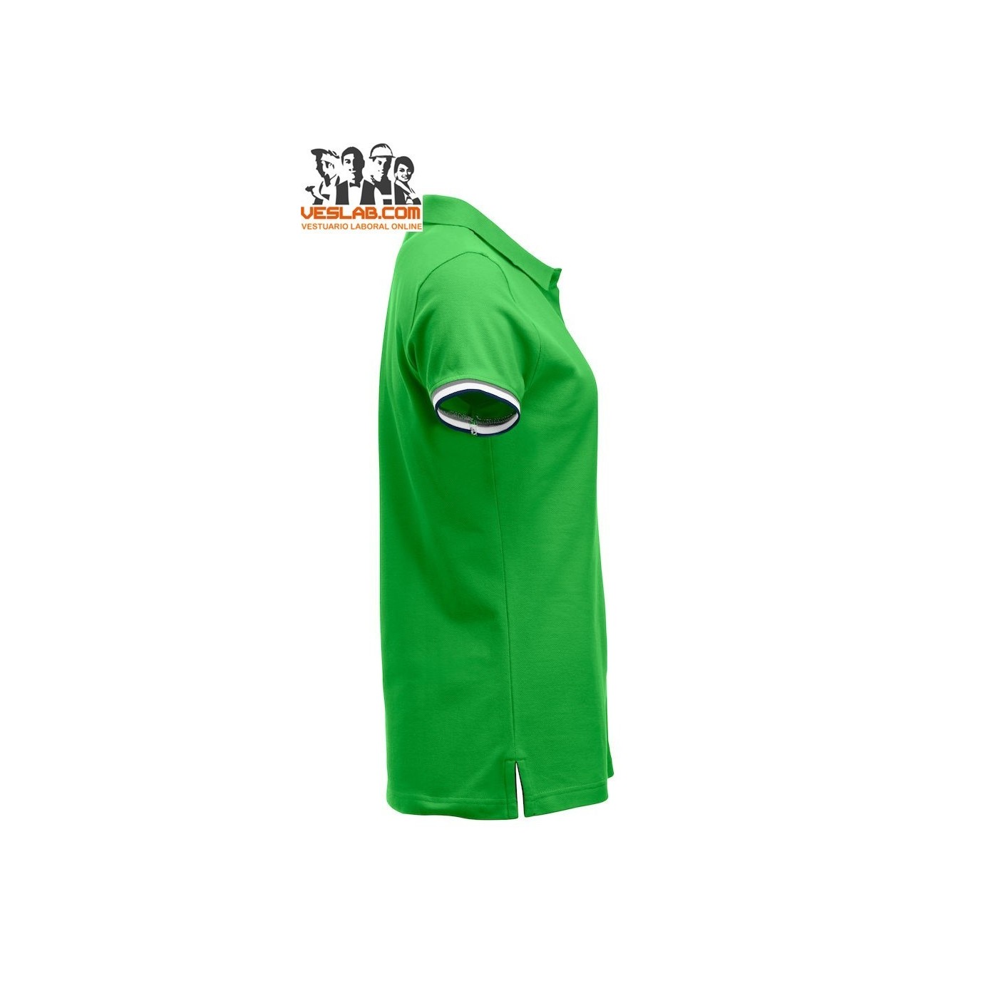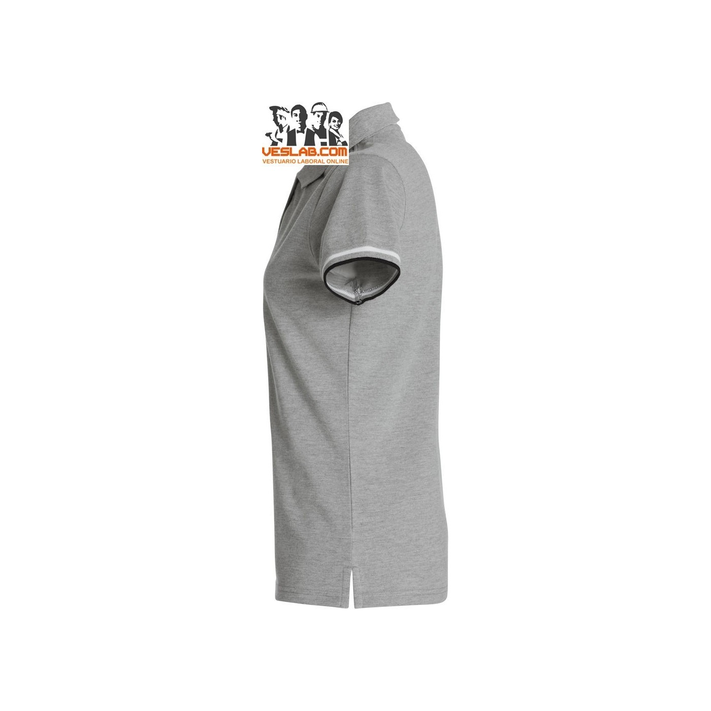 Cotton polo shirt with contrast to three colors on the back of the collar, placket, sleeve and side openings.