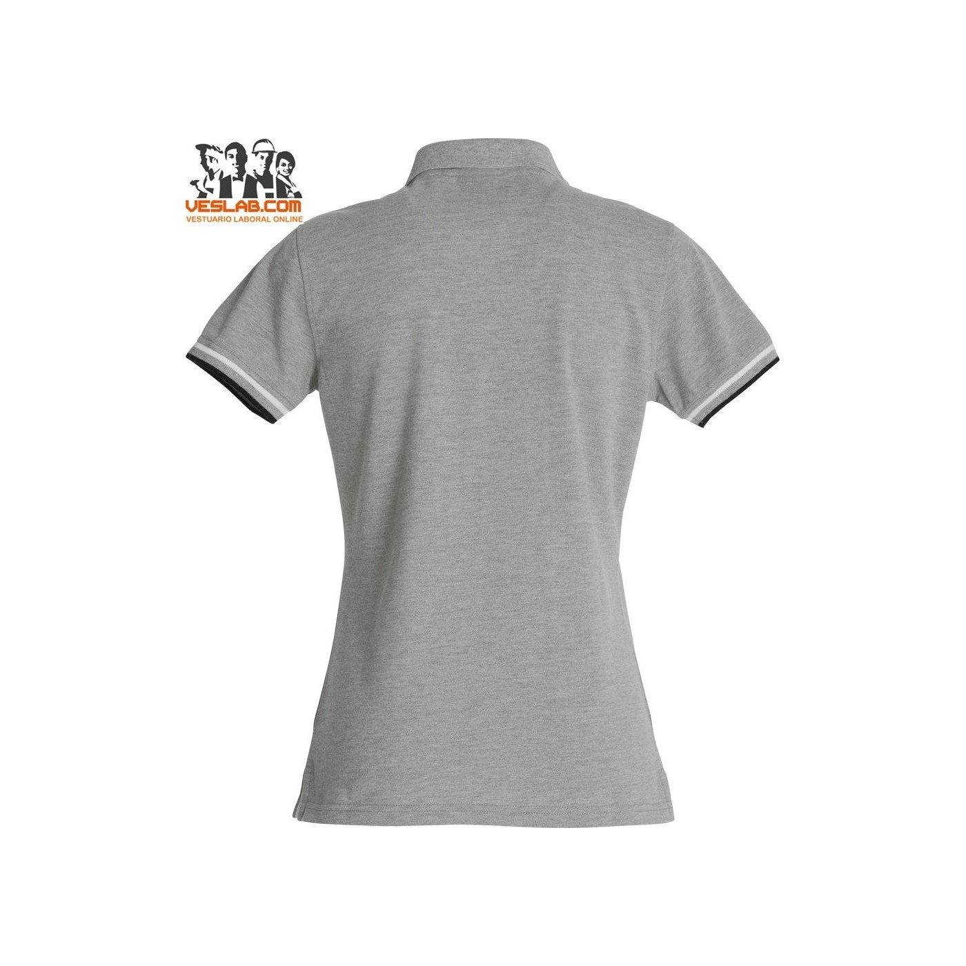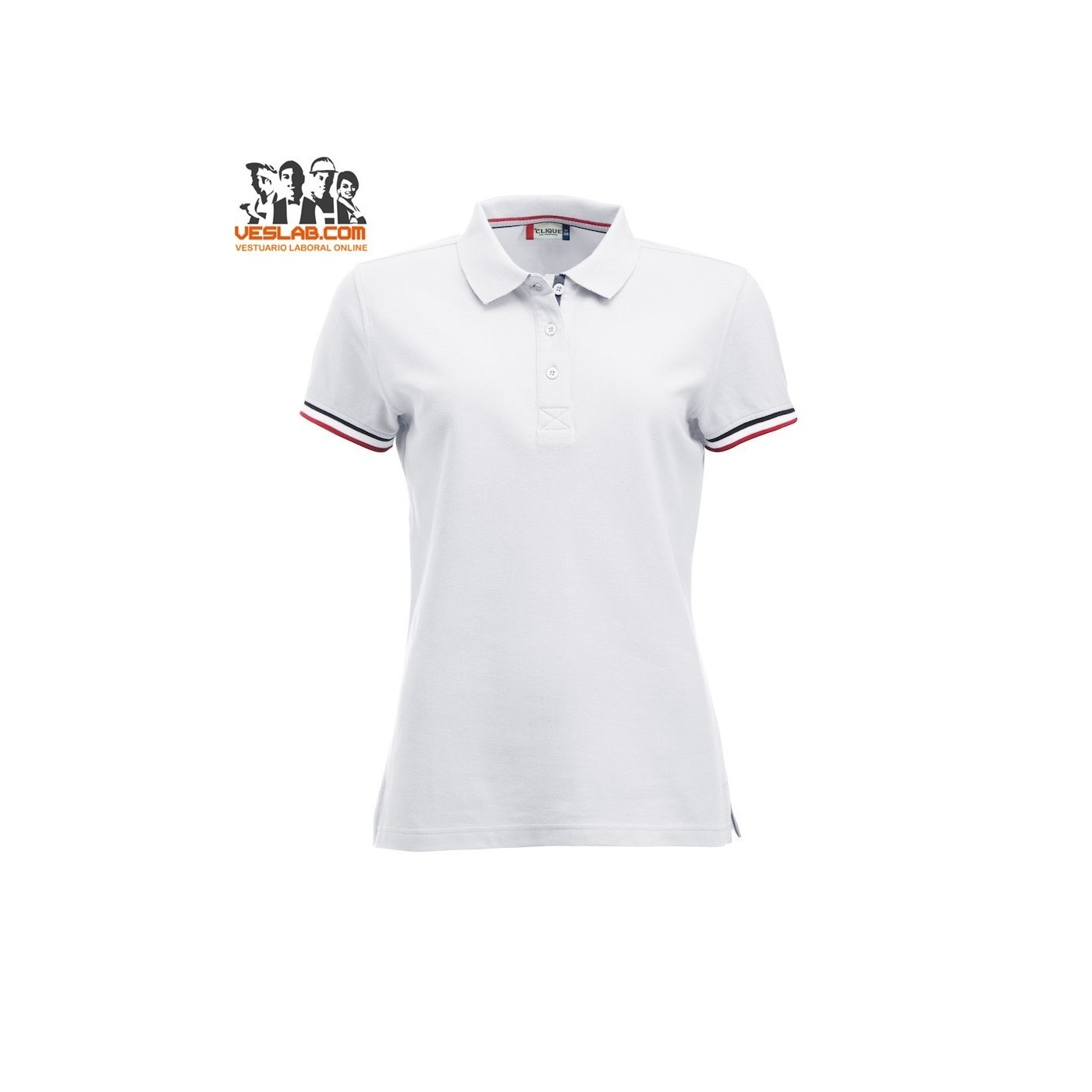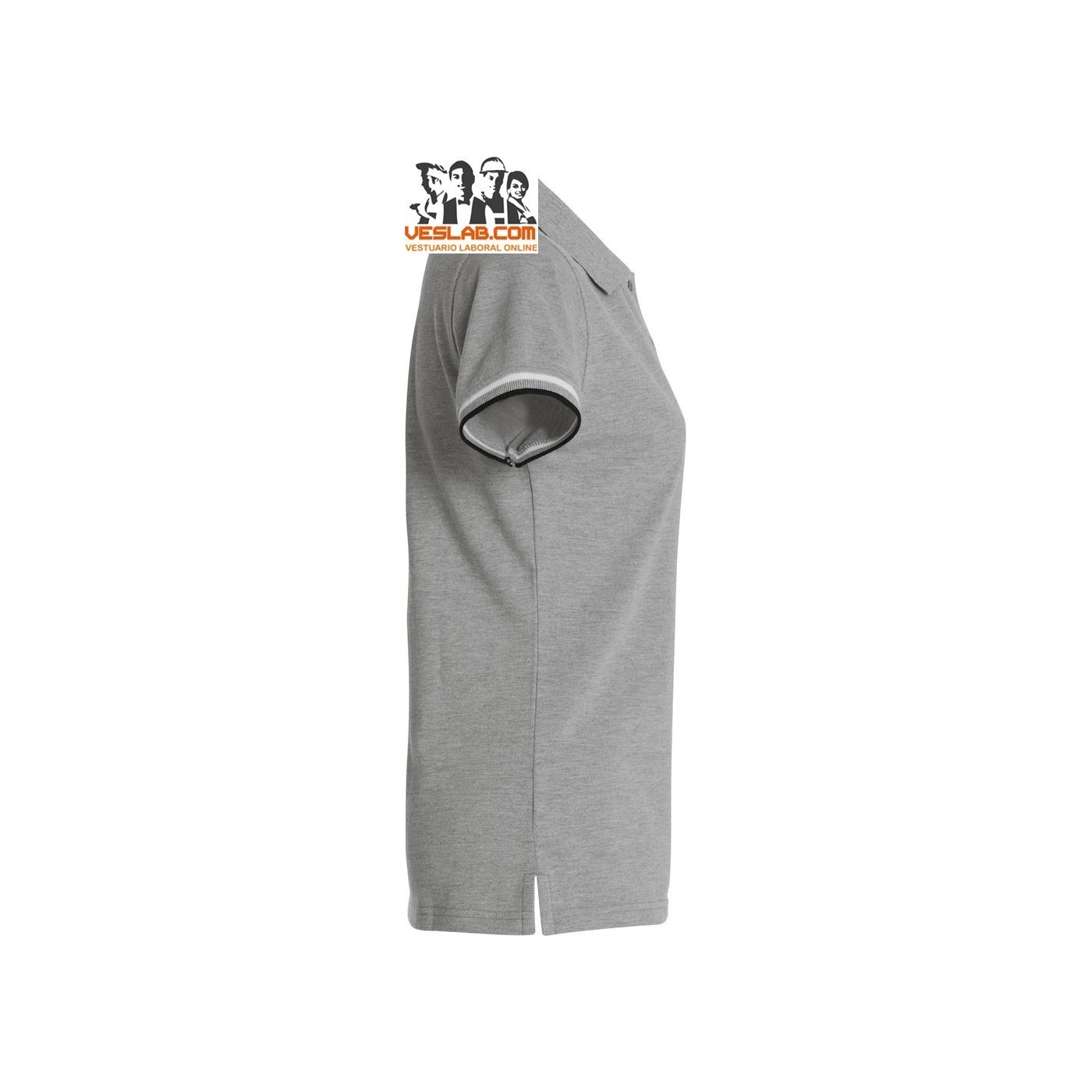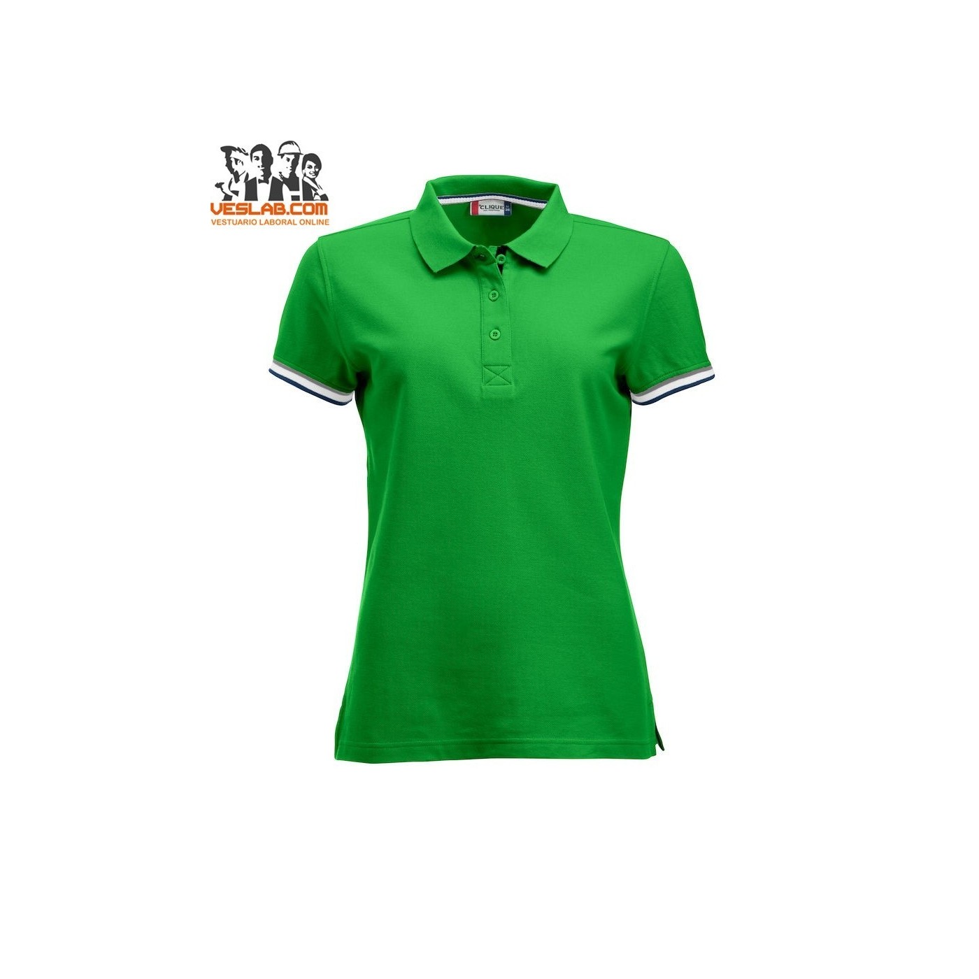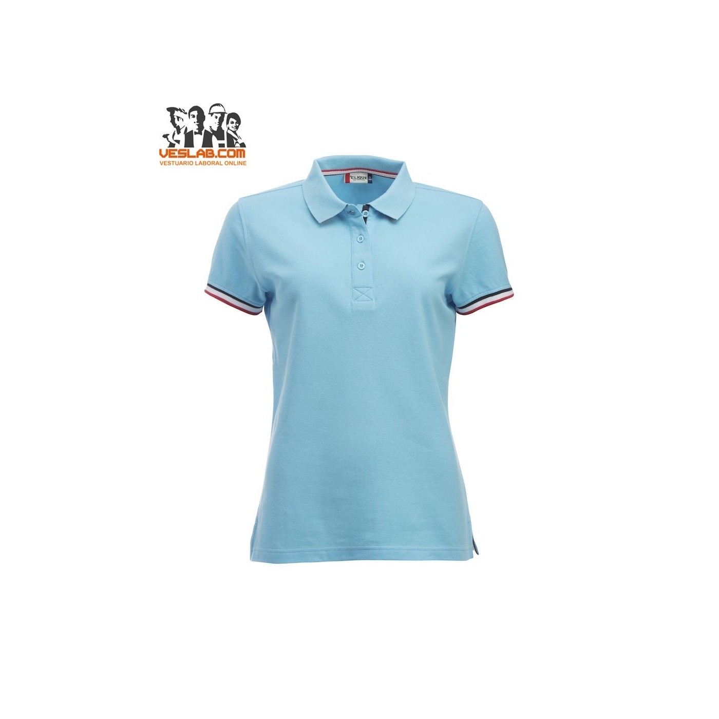 Cotton polo shirt with contrast to three colors on the back of the collar, placket, sleeve and side openings.