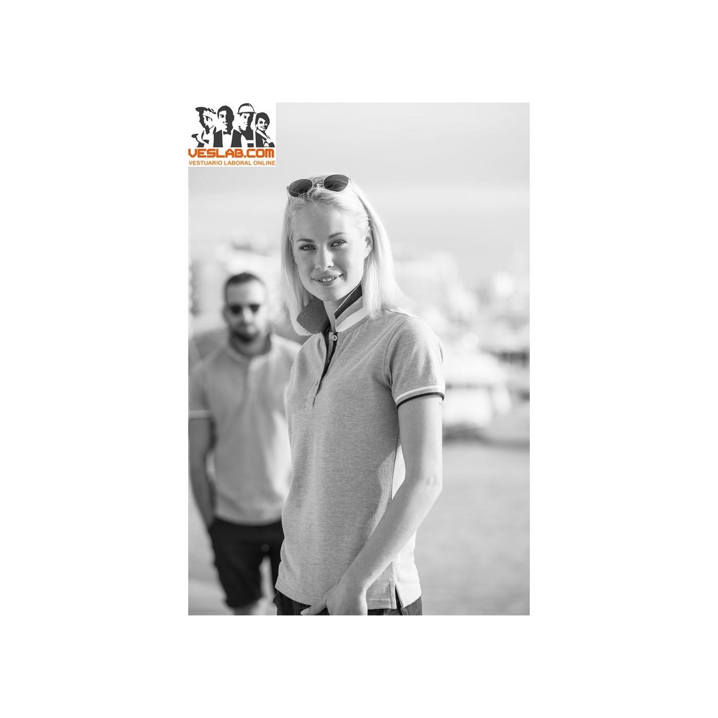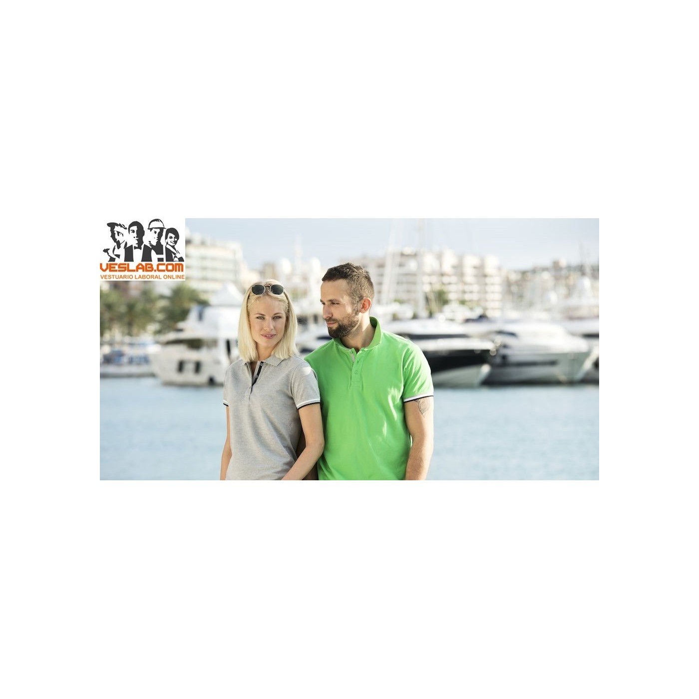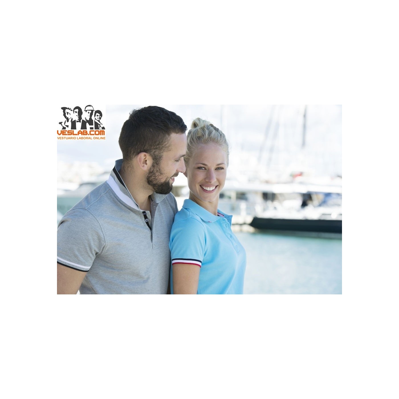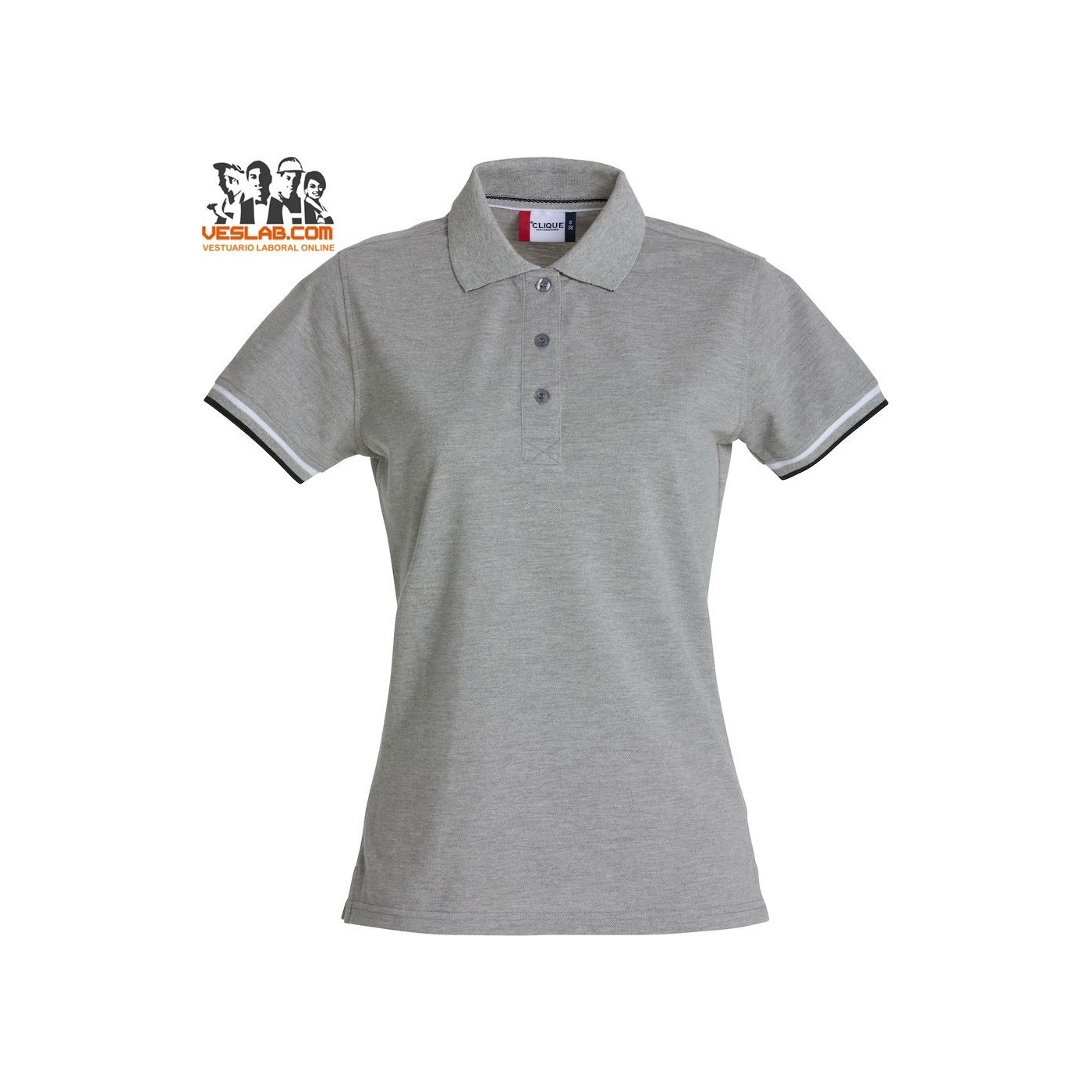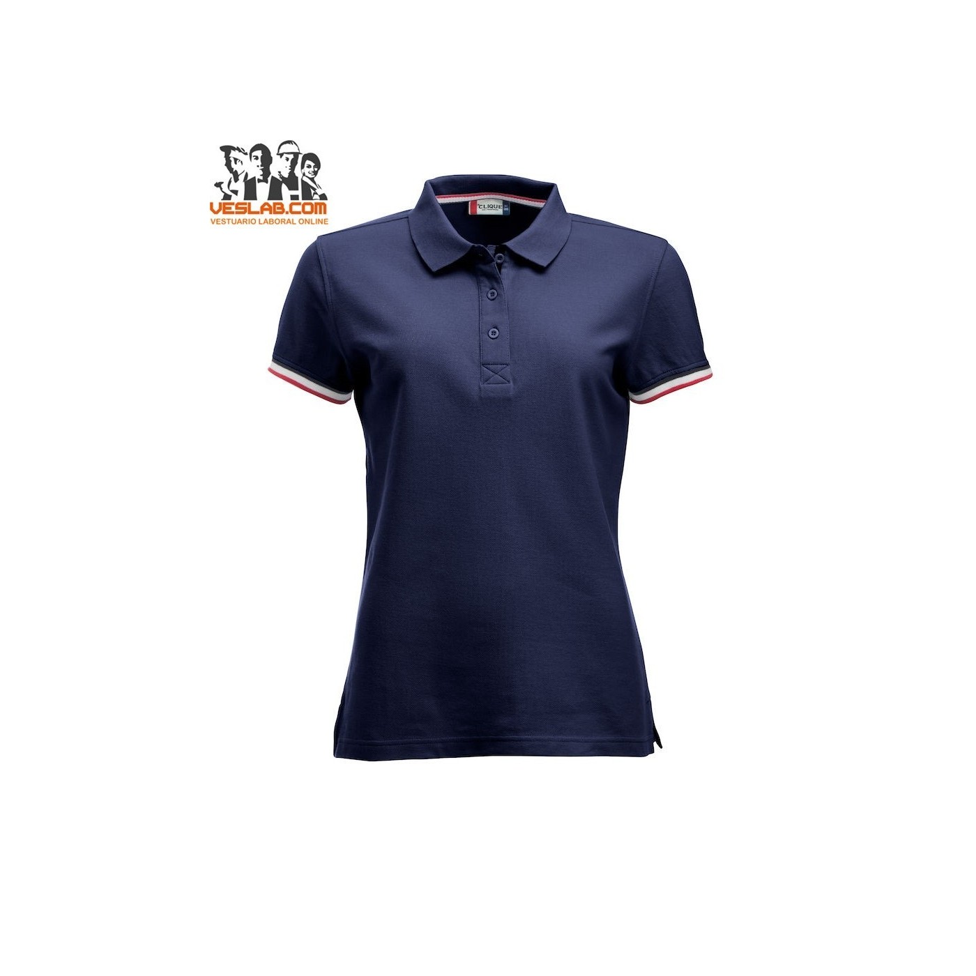 Cotton polo shirt with contrast to three colors on the back of the collar, placket, sleeve and side openings.