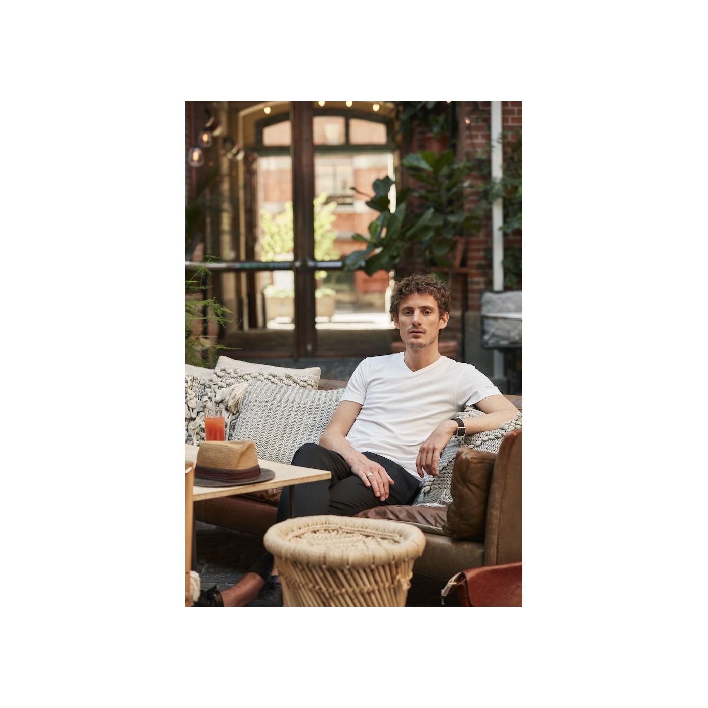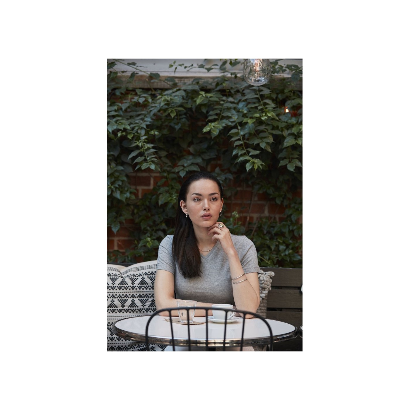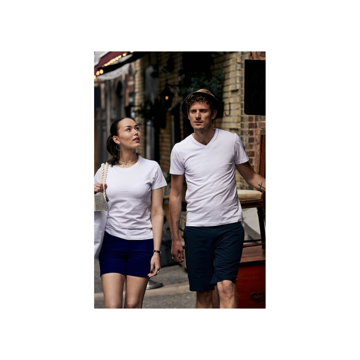 Our V-neck t-shirt in a slimmer fit, back placket and elastane rib. Female version with side seams.