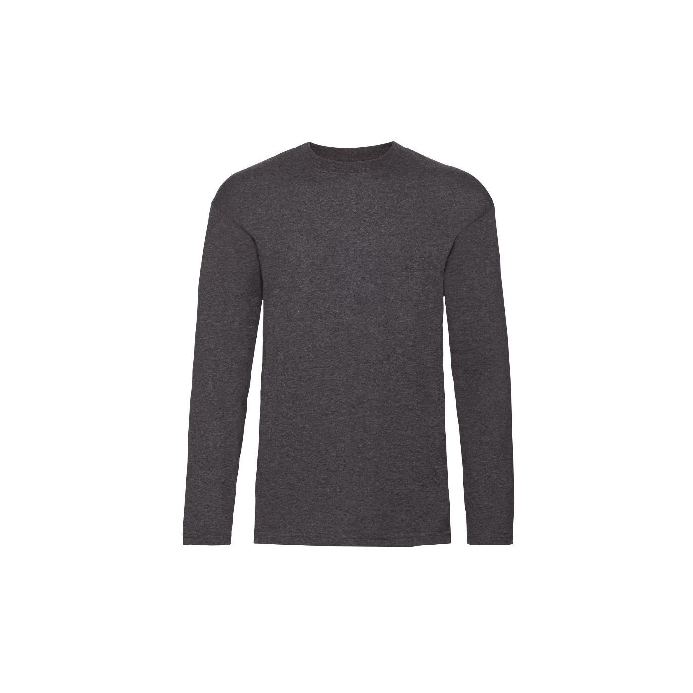 Camiseta manga larga de 165 gr/m2. Encintado en cuello, costuras dobles en mangas, cuello y dobladillo, género tubular preencogido para una óptima estabilidad de forma.