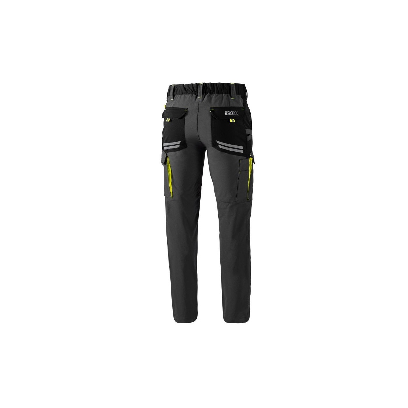 Technical work trousers with reinforcement inserts on the knees with anti-abrasion material. Zip and button closure. It has a hidden interior side pocket with zip closure.