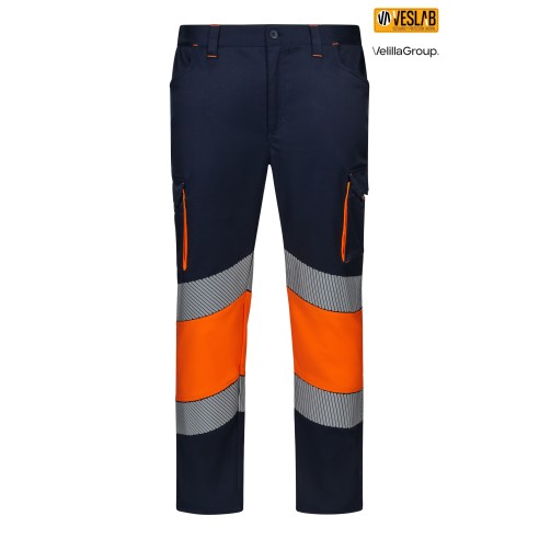 Long two-tone high visibility pants available in various color combinations to match all types of jobs that require ensuring worker visibility. Its base fabric is 46% cotton.
